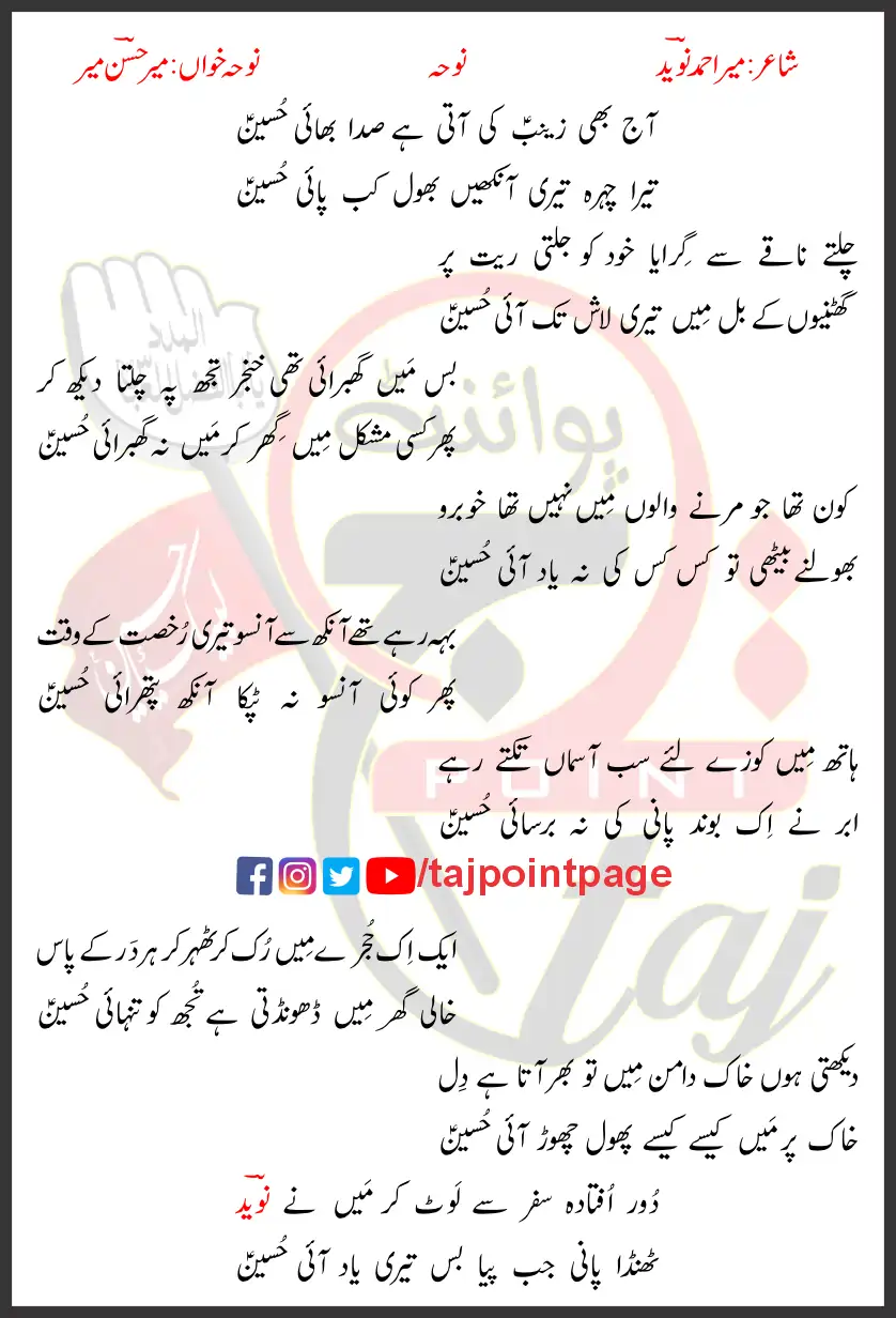 Aaj Bhi Zainab Ki Aati Hai Sada Bahi Hussain Lyrics Urdu 2010 Write Up Poster Image