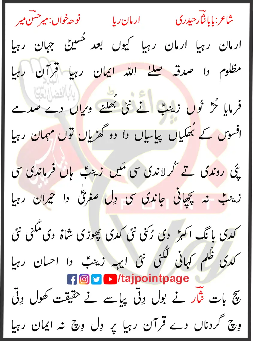 Arman Riya Arman Riya Kyun Baad Hussain Jahan Riya Mir Hasan Mir Lyrics Punjabi 2011