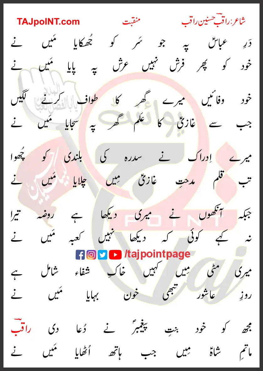 Dar-e-Abbas Pe Jo Sar Ko Jhukaya Main Ne Lyrics Urdu 2017