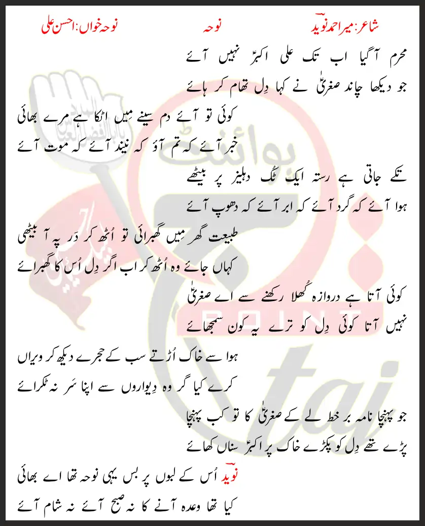 Muharam Aa Giya Aab Tak Ali Akbar Nahi Aaye Ahsan Ali Lyrics In Urdu 2012