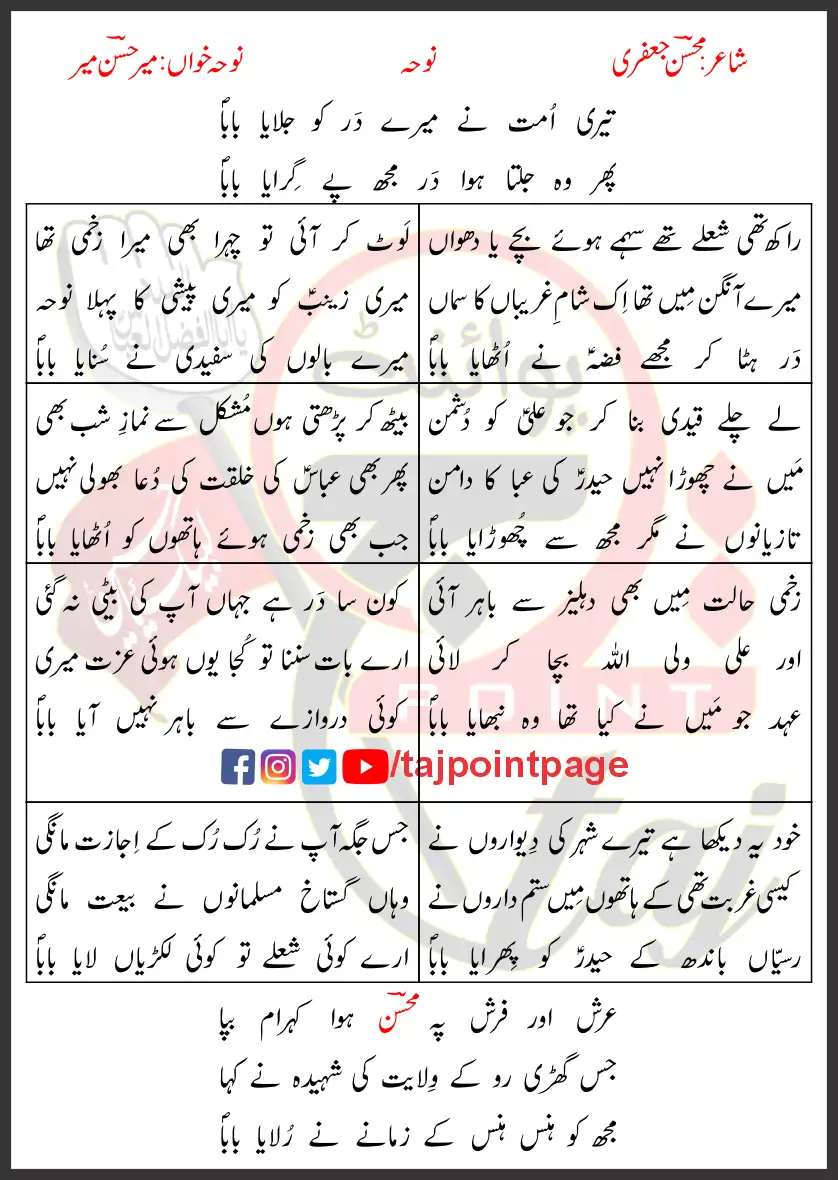 Teri Ummat Ne Mere Dar Ko Jalaya Baba Lyrics Urdu 2016