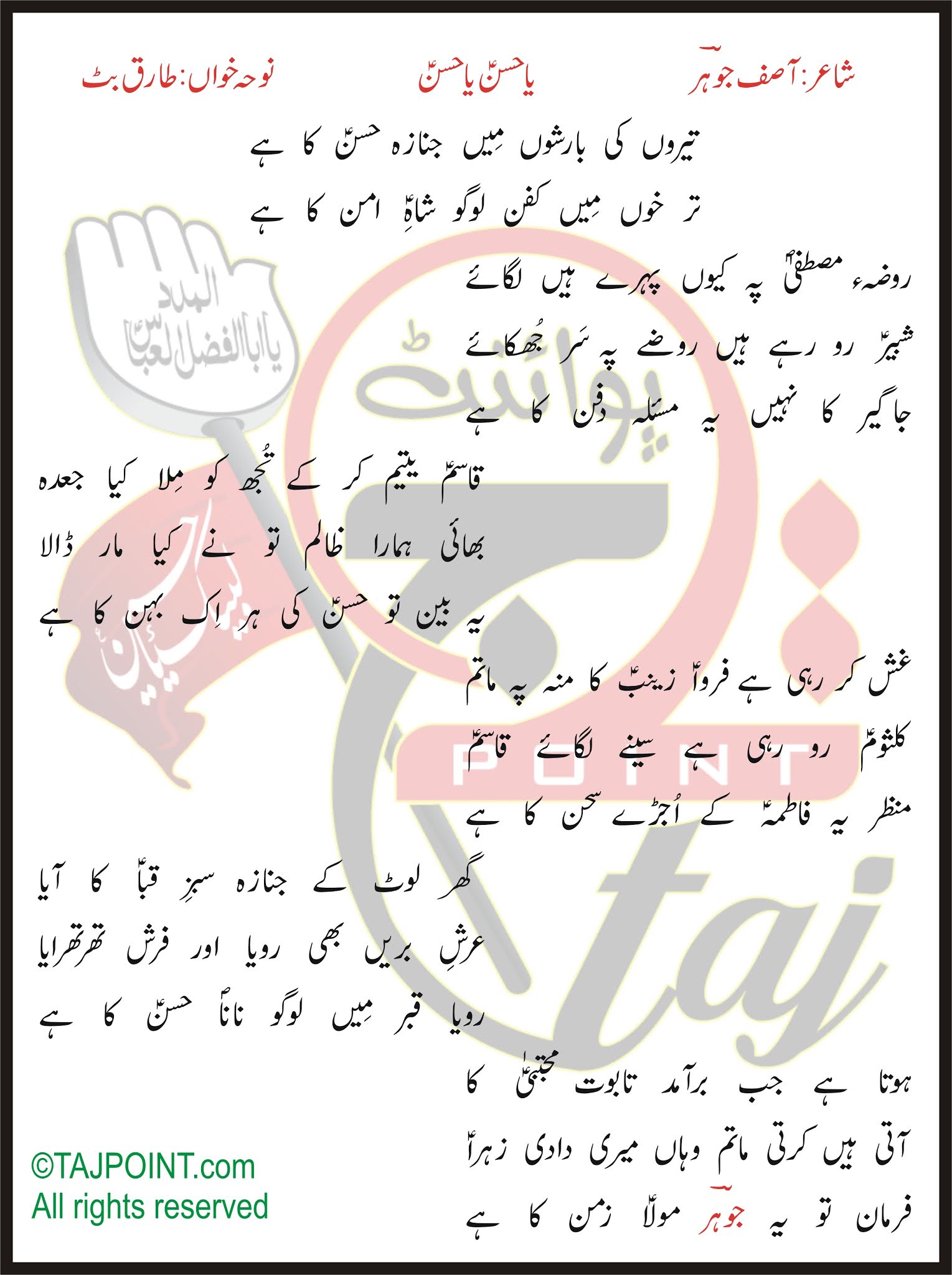 Teroon Ki Barishion Mein Janaza Hasan Ka Hai Lyrics In Urdu and Roman Urdu