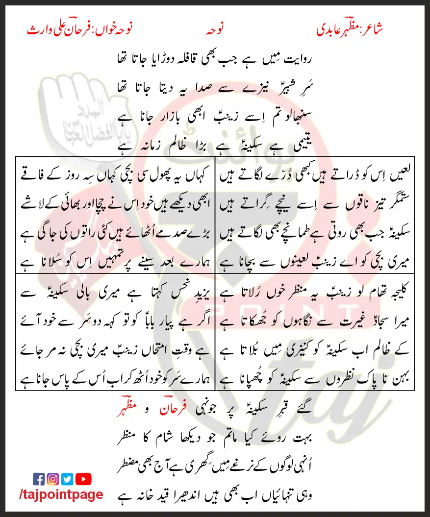 Yateemi Hai Sakina Hai Bara Zalim Zamana Hai Lyrics In Urdu 2017