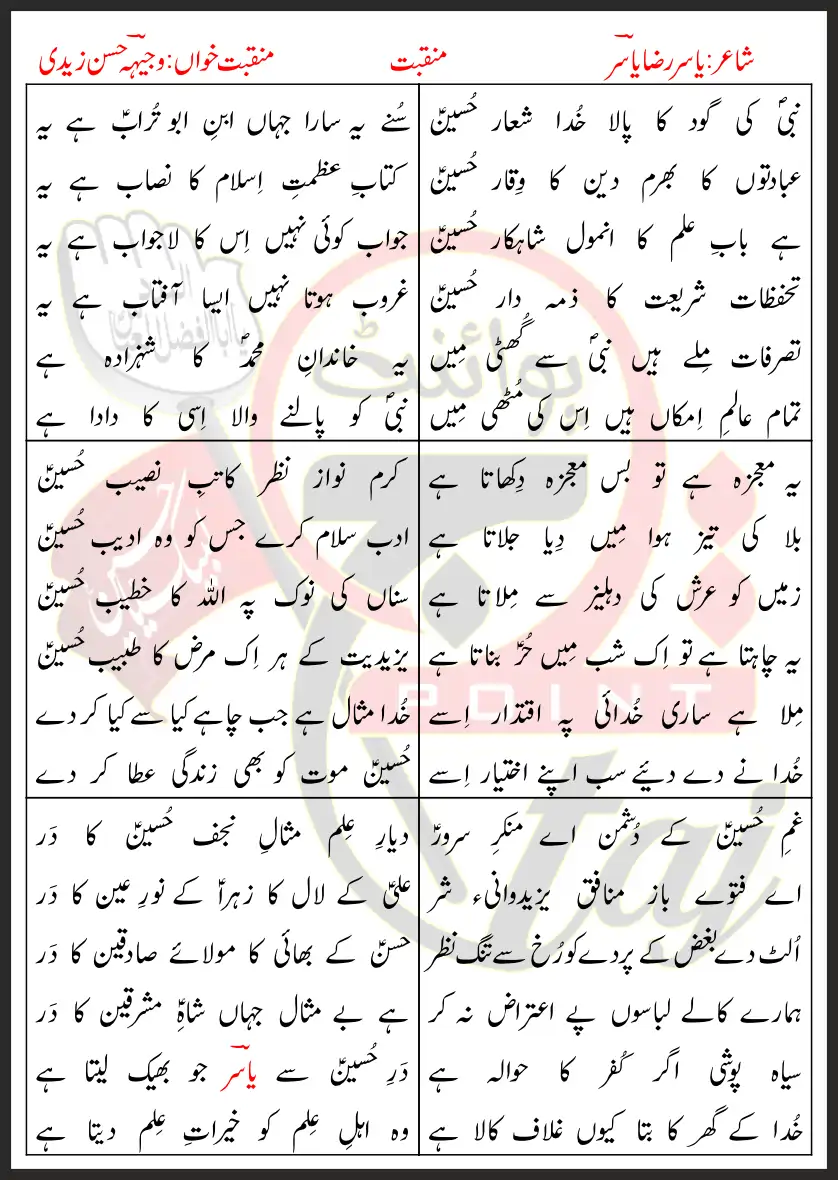 Nabi Ki Goad Ka Pala Khuda Shiaar Hussain Lyrics In Urdu 2008 Write Up Poster Image