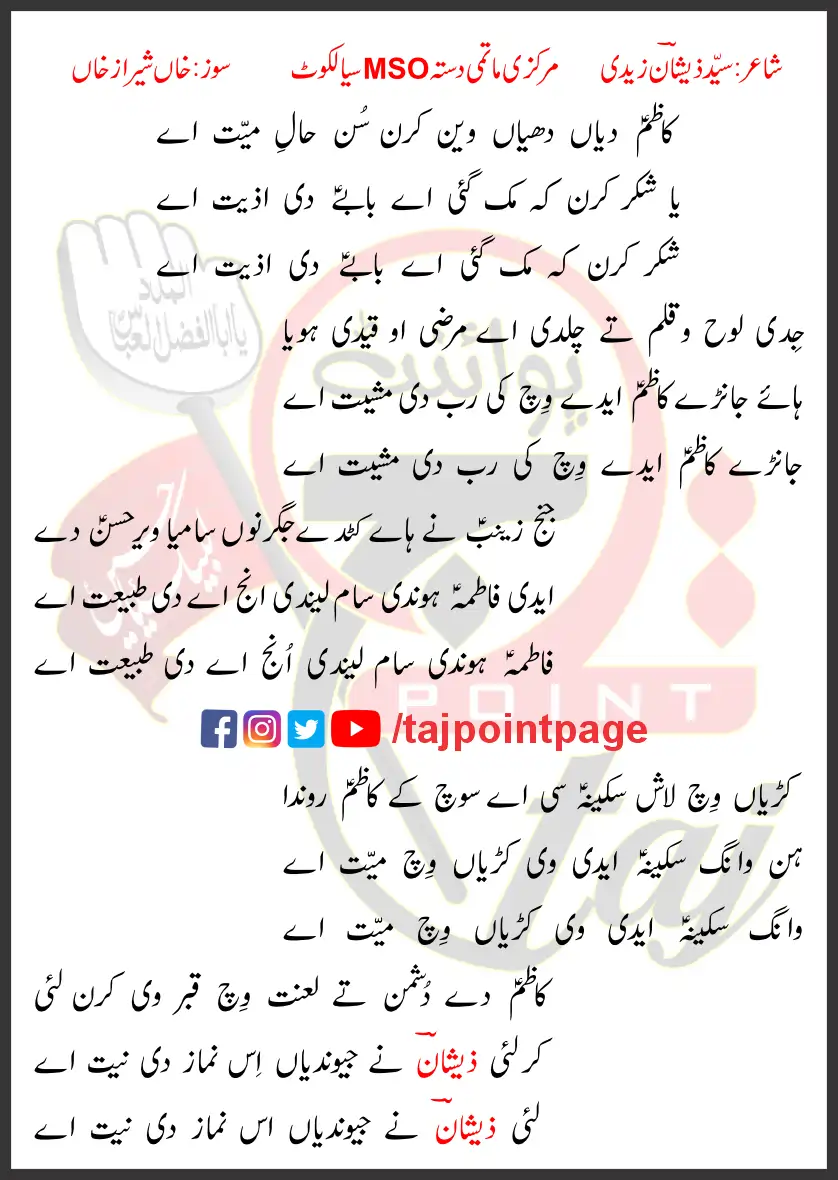 Kazim Diyaan Dhiyaan Wain Karan Sun Haal e Maiyat Aye