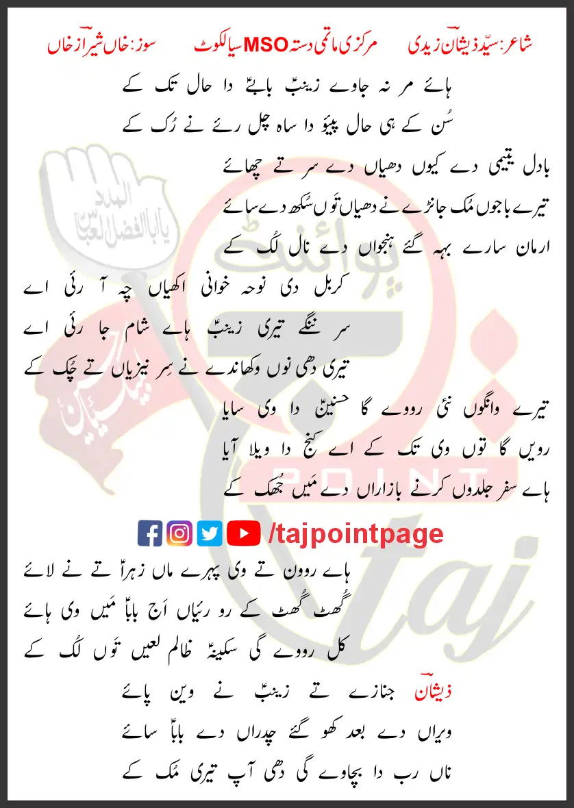 Haye Mar Na Jaway Zainab Babay Da Haal Tak Ke Lyrics Punjabi 2013