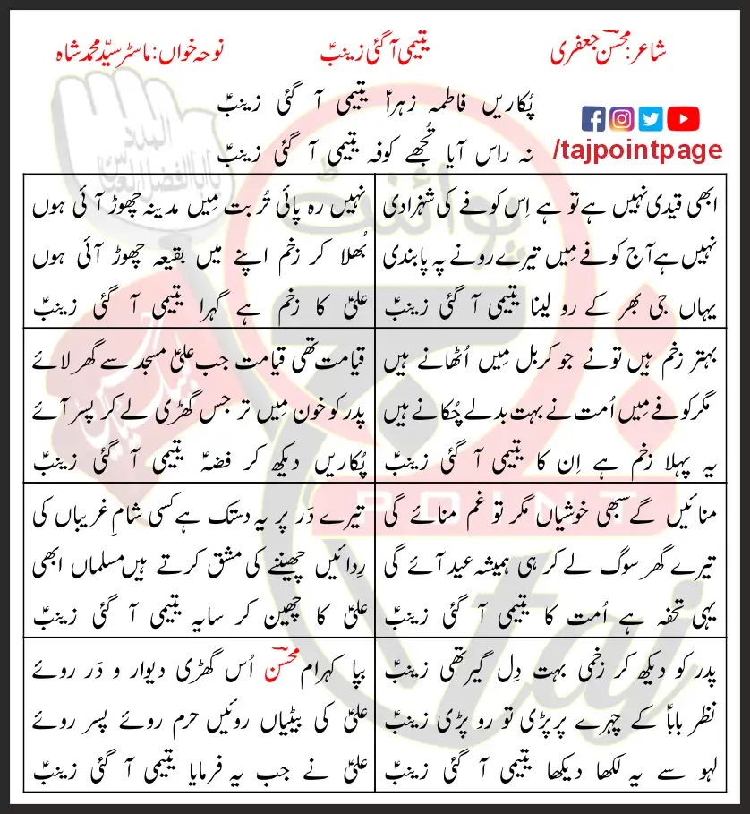 Yateemi Aa Gayi Zainab Master Syed Mohammad Shah Lyrics In Urdu 2018
