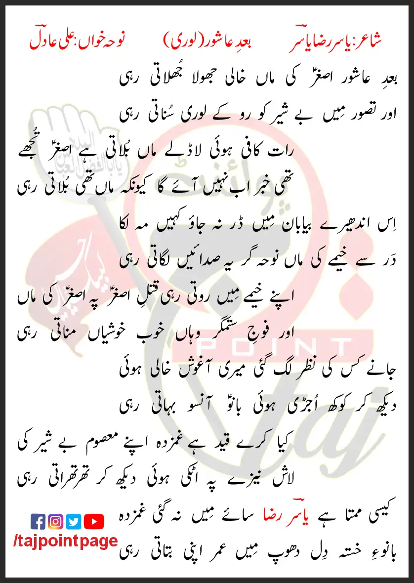 Baad-e-Ashor Asghar Ki Maa Khali Jhola Jhulati Rahi Lyrics In Urdu 2018