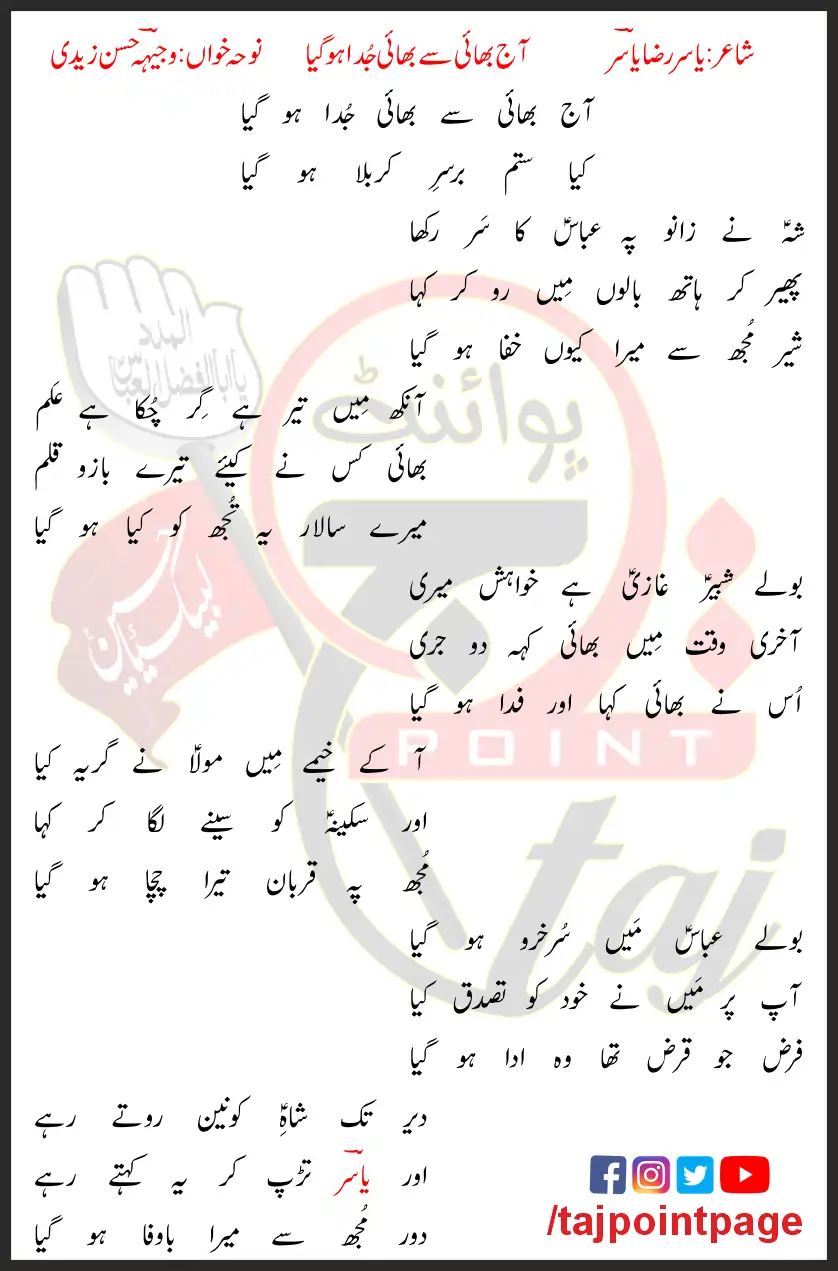 Aaj Bhai Se Bhai Juda Ho Gaya Lyrics In Urdu 2015