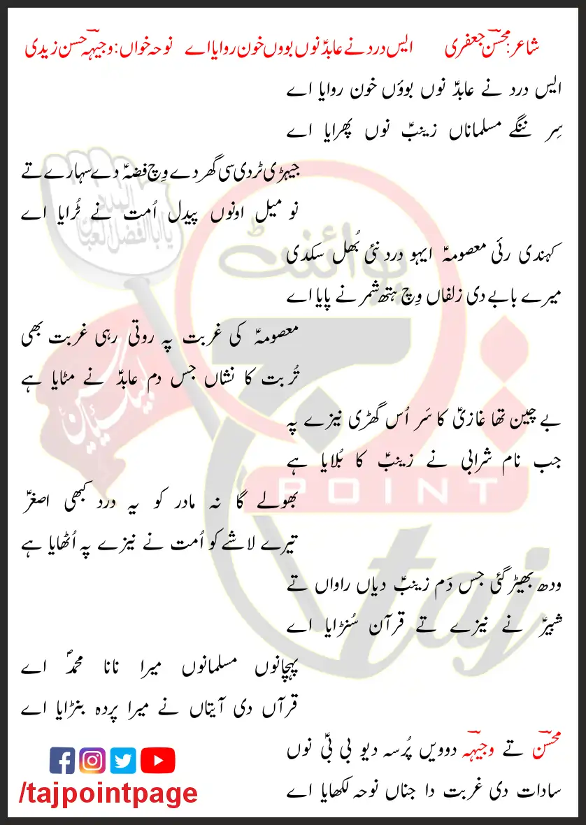 Ais Dard Ne Abid Nu Baon Khon Rawaya Aye Lyrics In Urdu 2015