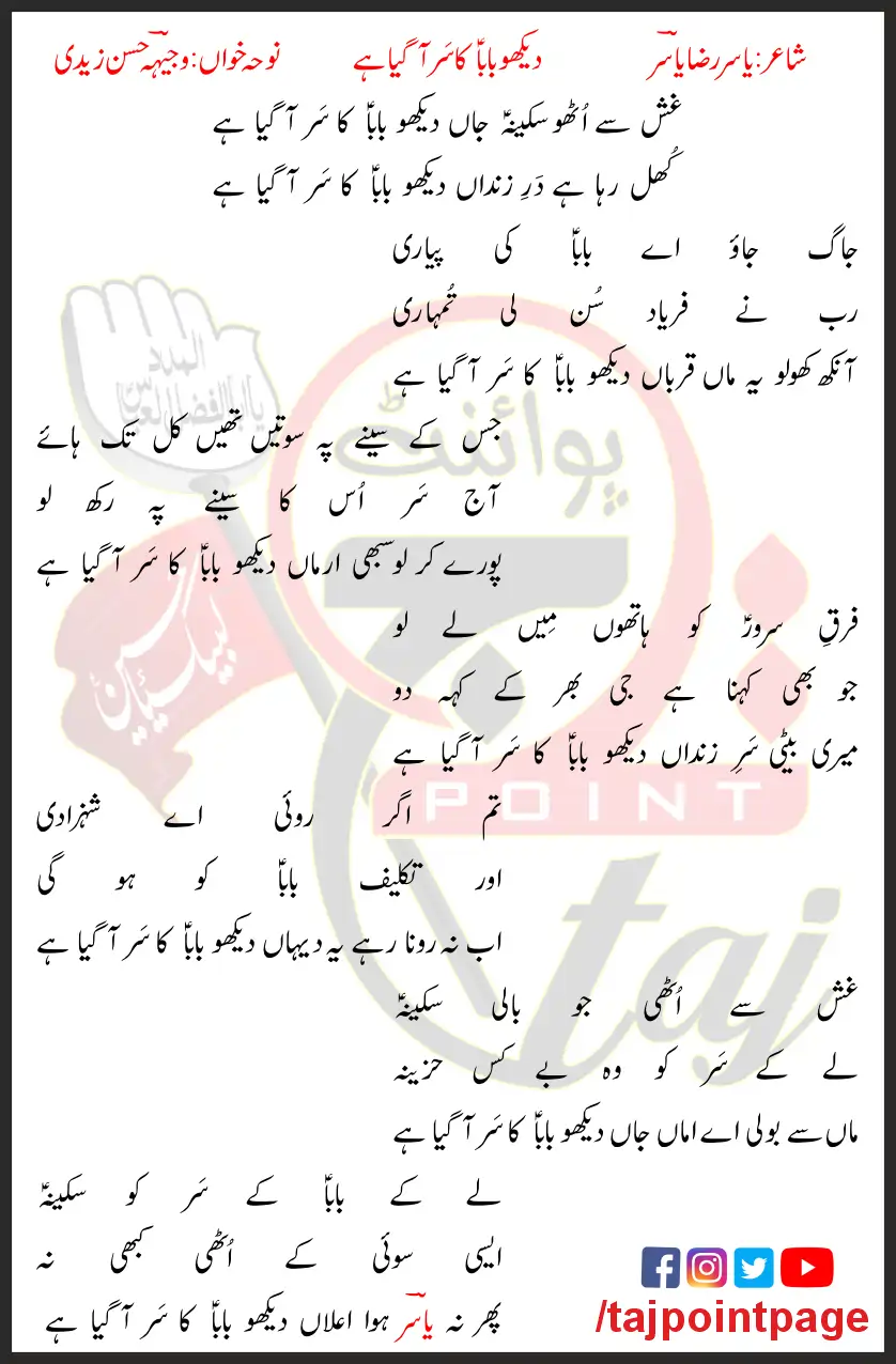 Gash Se Utho Sakina Jaan Dekho Baba Ka Sar Aa Gaya Hai Lyrics In Urdu 2016