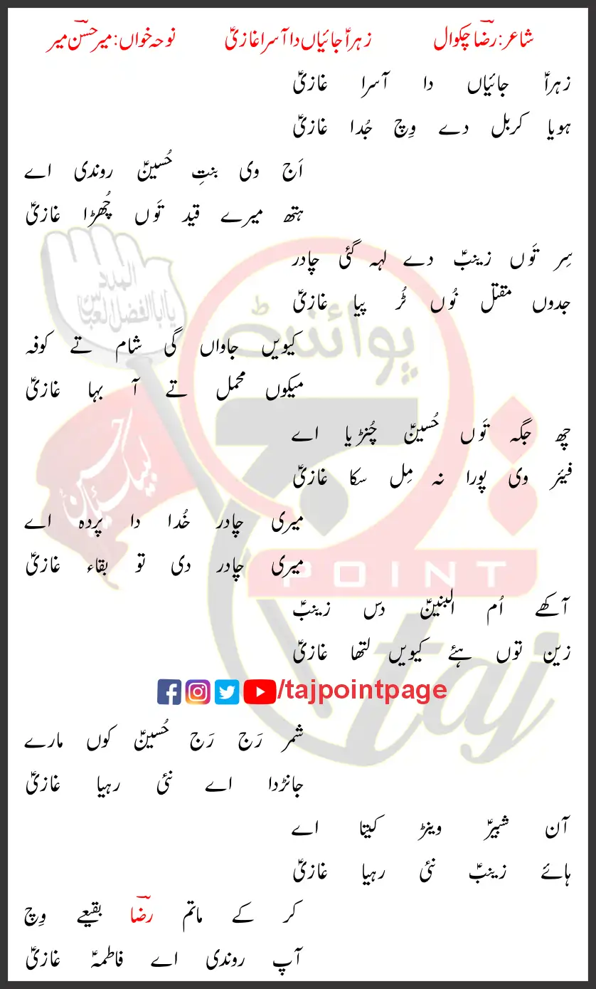 Zahra Jaiyan Da Asra Ghazi Mir Hasan Mir Lyrics Saraiki 2018