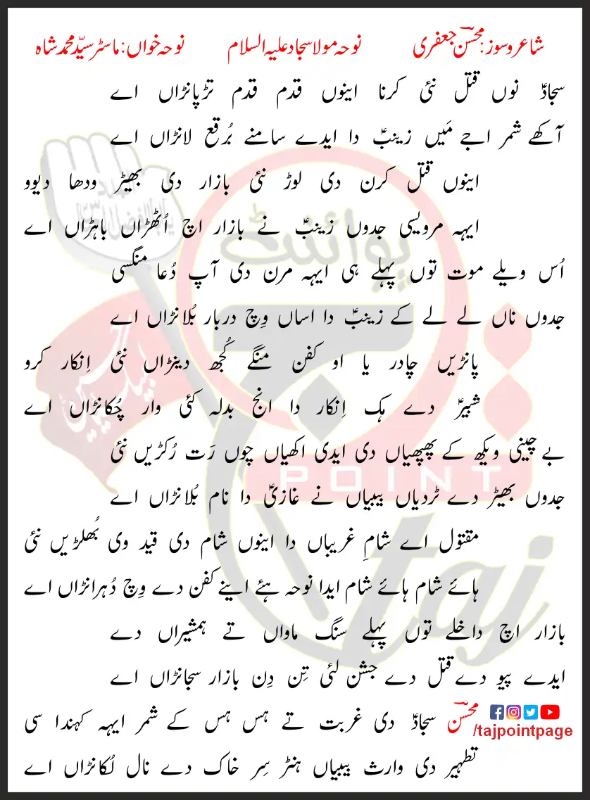 Sajjad Nu Qatal Nayi Karna Aino Qadam Qadam Tarparaan Aye Lyrics In Punjabi Saraiki 2018