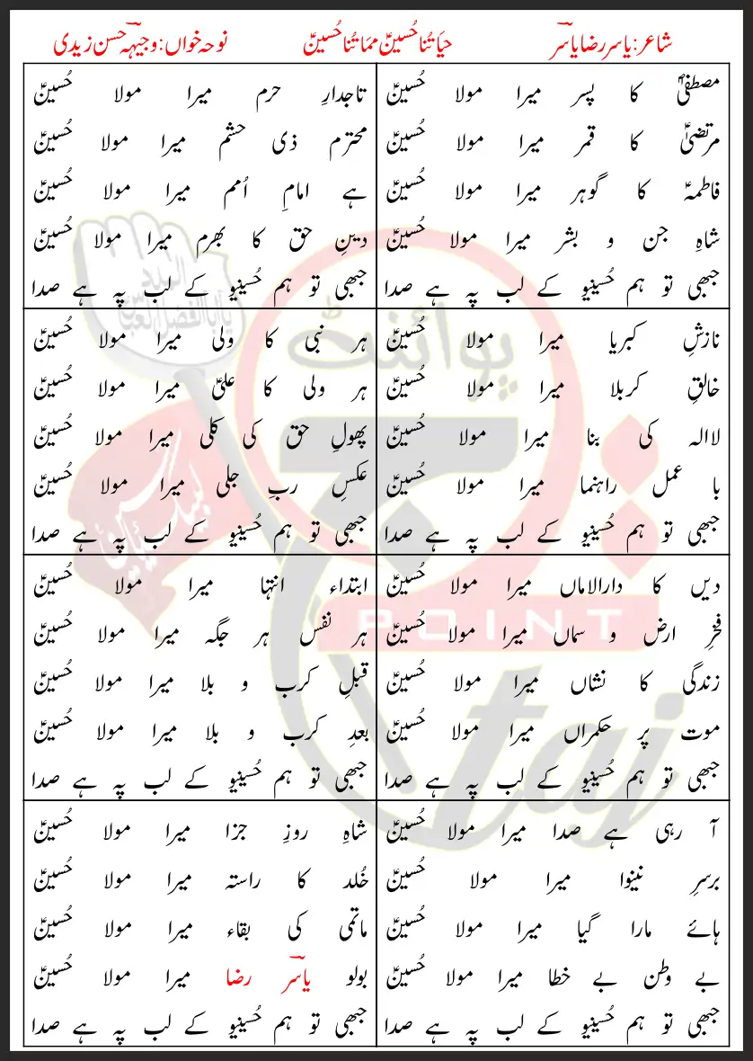 La Illah Ki Bina Mera Mula Hussain(AS).