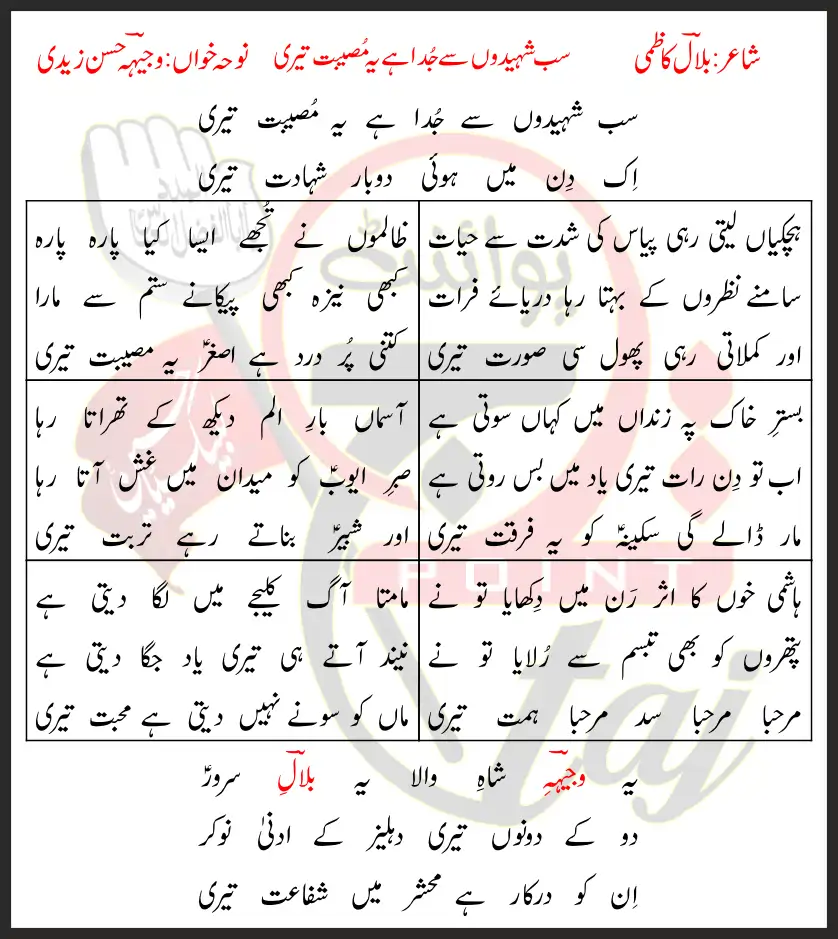 Sab Shaheedon Se Juda Hai Ye Mosibat Teri Lyrics In Urdu 2014