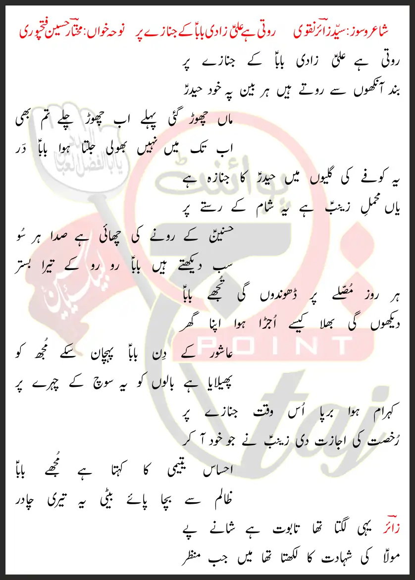 Roti Hai Ali Zaadi Baba Ke Janazay Par Lyrics in Urud 2019