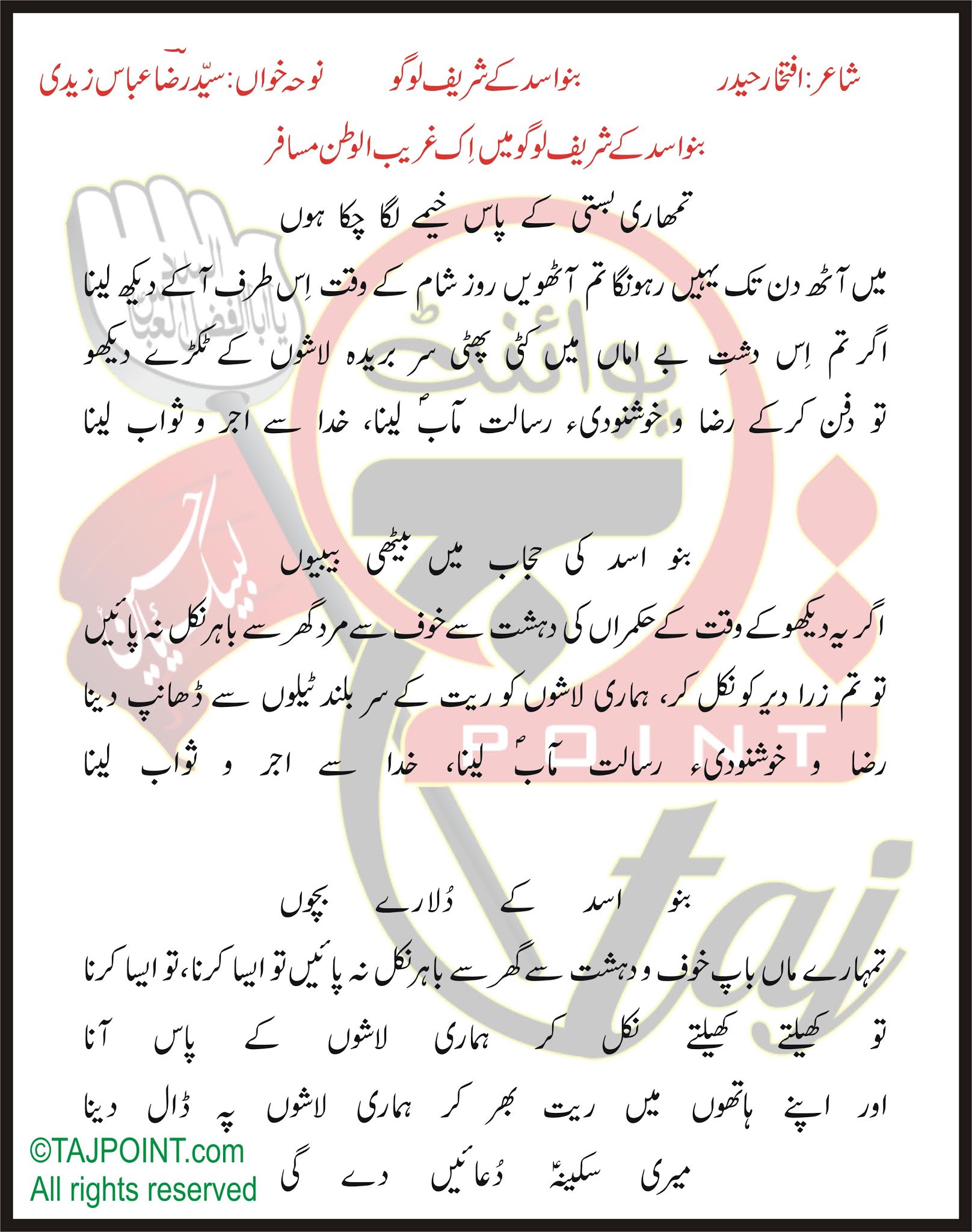 Noha KhuwaN: :Syed Raza Abbas Zaidi: