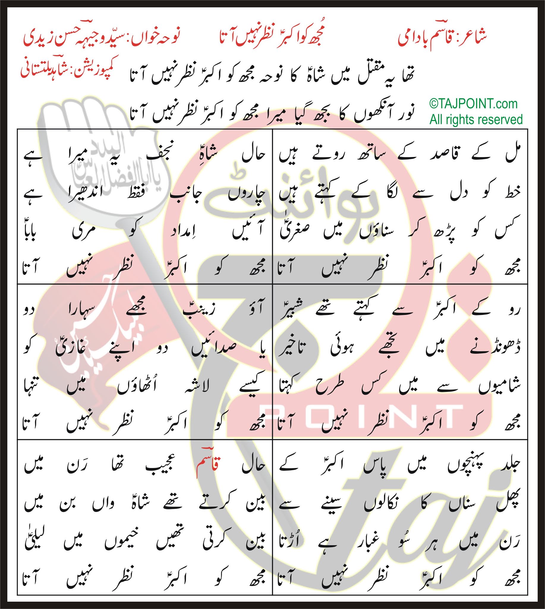 Tha Yeh Maqtal Mein Shah Ka Noha Mujh Ko Akbar Nazar Nahi Aata.