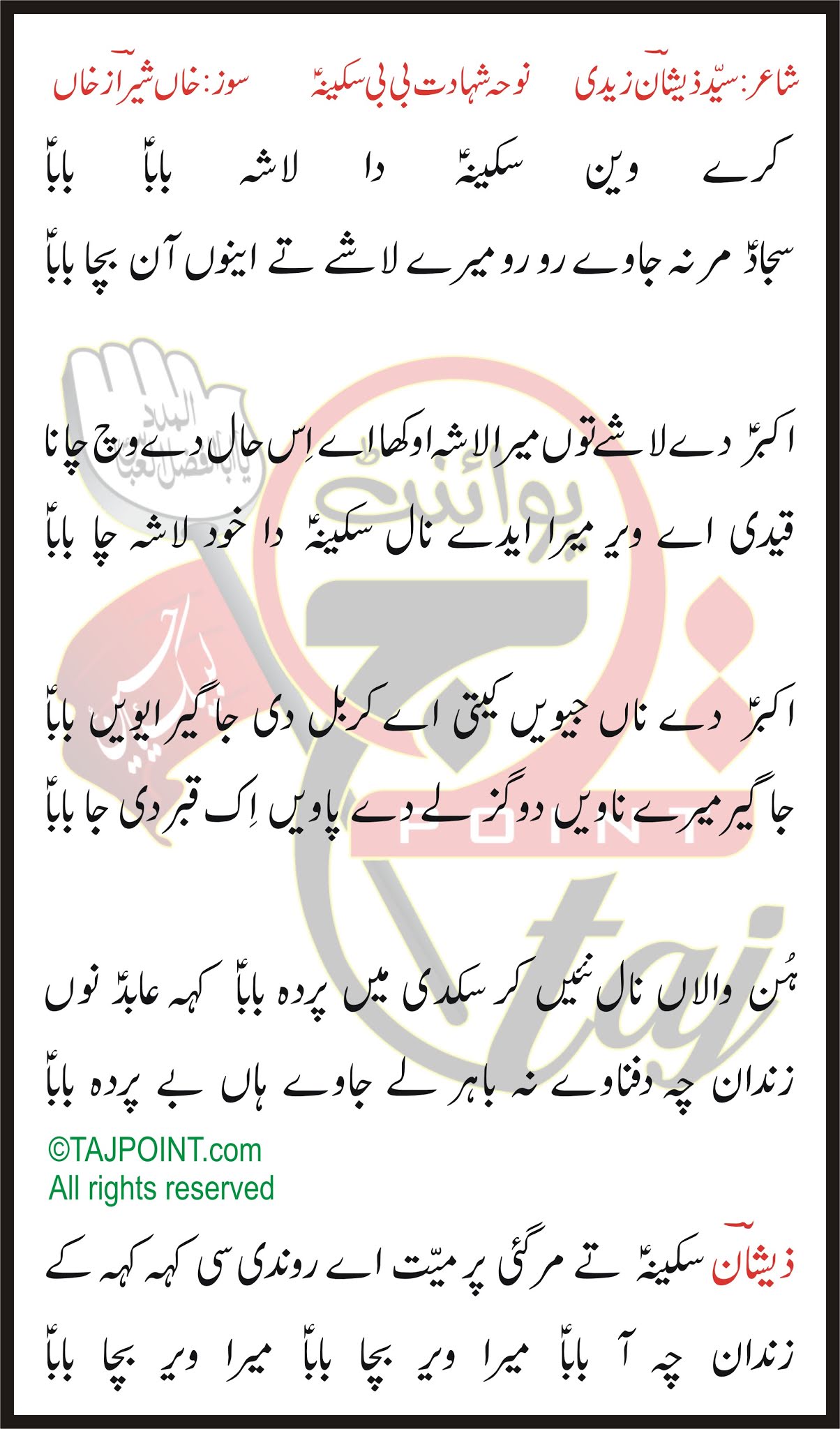 کرے وین سکینہؑ دا لاشہ باباؑ باباؑ