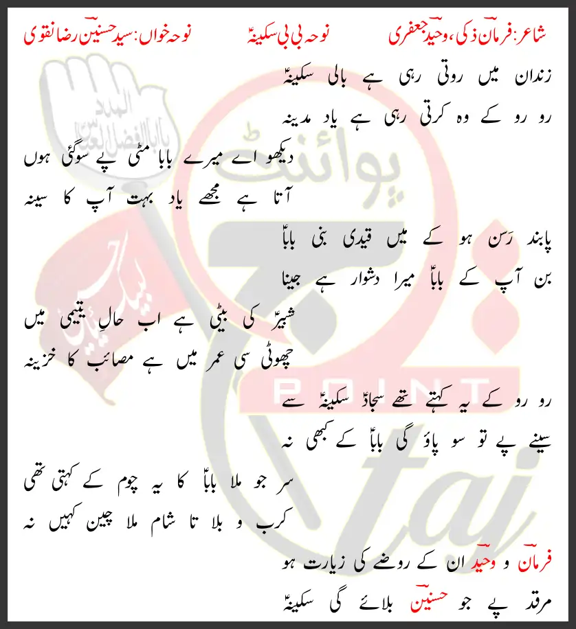 Zindan Mein Roti Rahi Hai Bali Sakina Lyrics In Urdu 2017