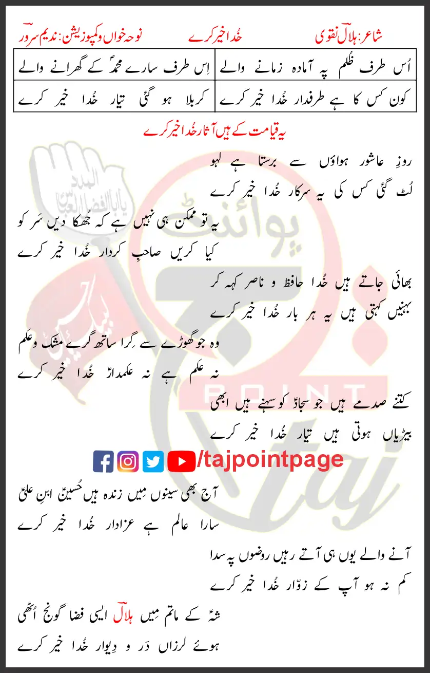 Khuda Khair Karey Lyrics In Urdu Nadeem Sarwar