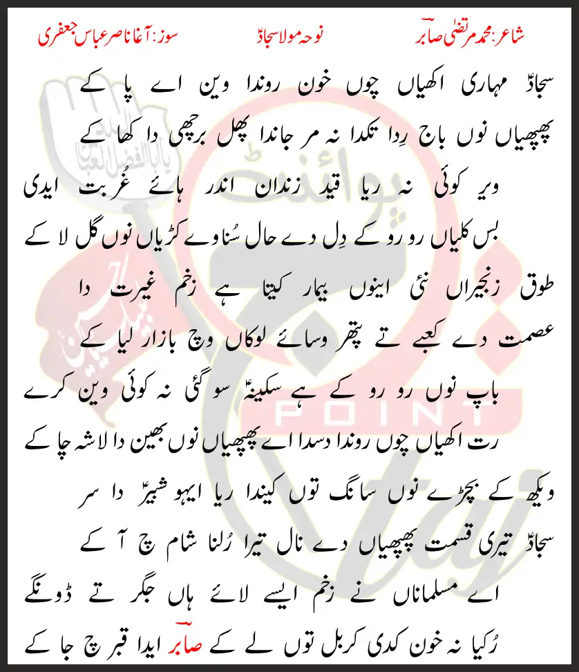 Baap Choon Ro Ro Ke Hai Sakina So Gayi Na Koi Wain Karey.