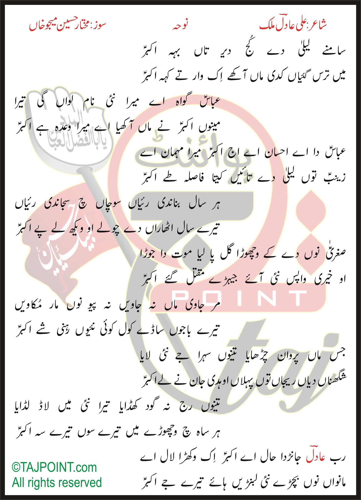 Rab :ADIL: Janrda Haal Aye Akbar Ik Wakhra Lal Aye.
