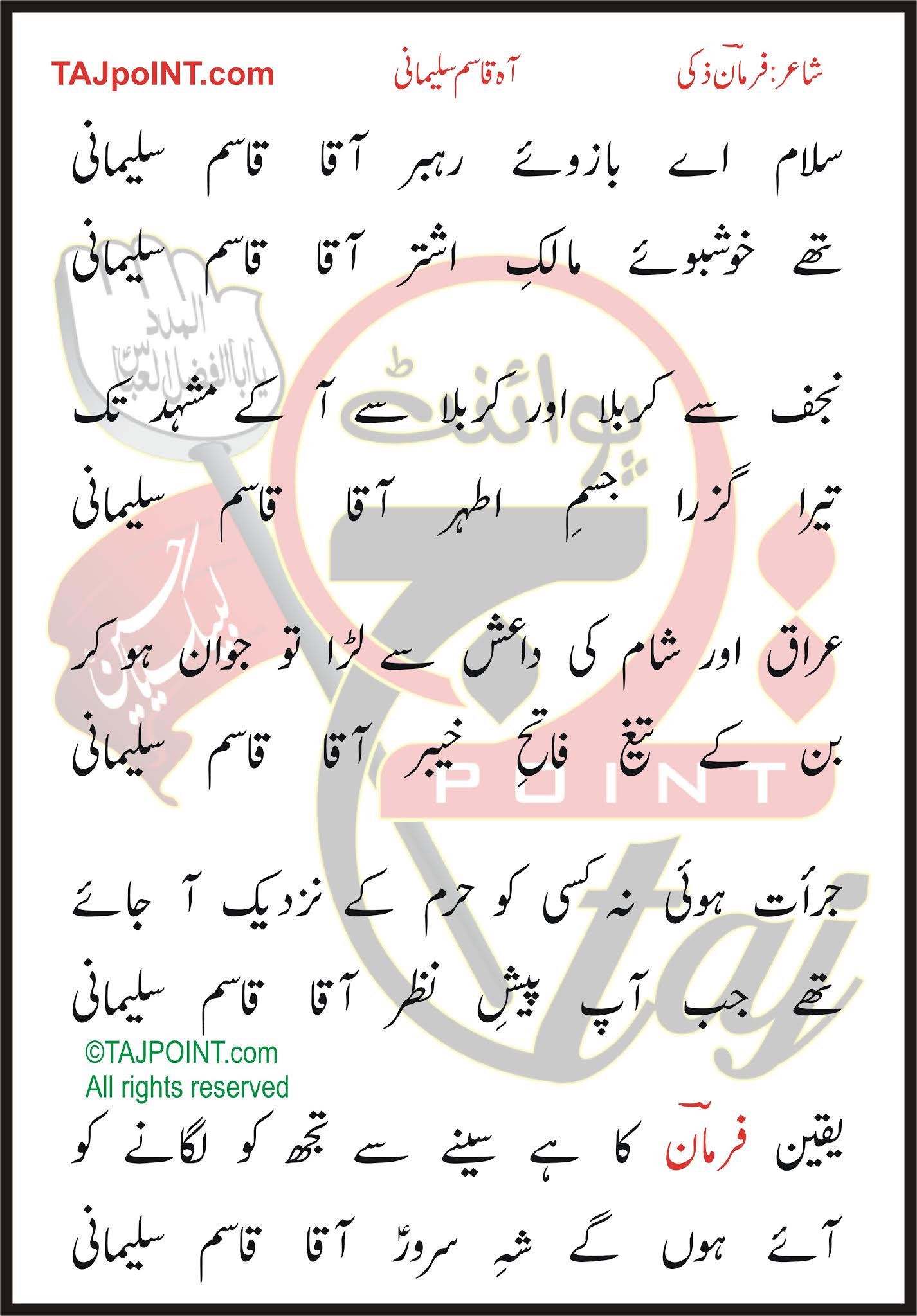 Salam Aye Bazu-e-Rehbar Aaqa Qasim Sulemani.