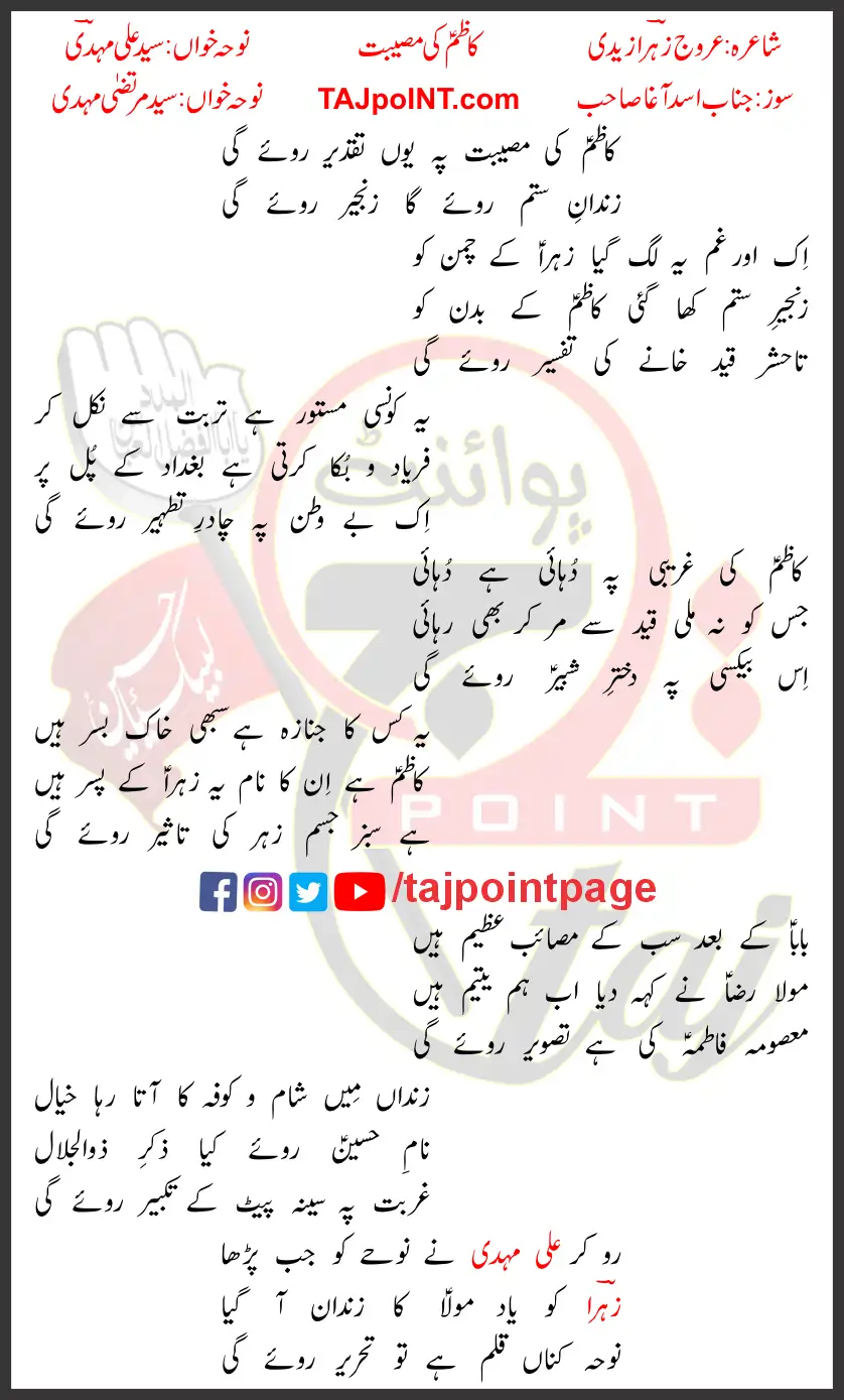 Kazim Ki Musibat Pe Youn Taqdeer Roye Gi Lyrics Urdu 2020 Write Up Poster Image