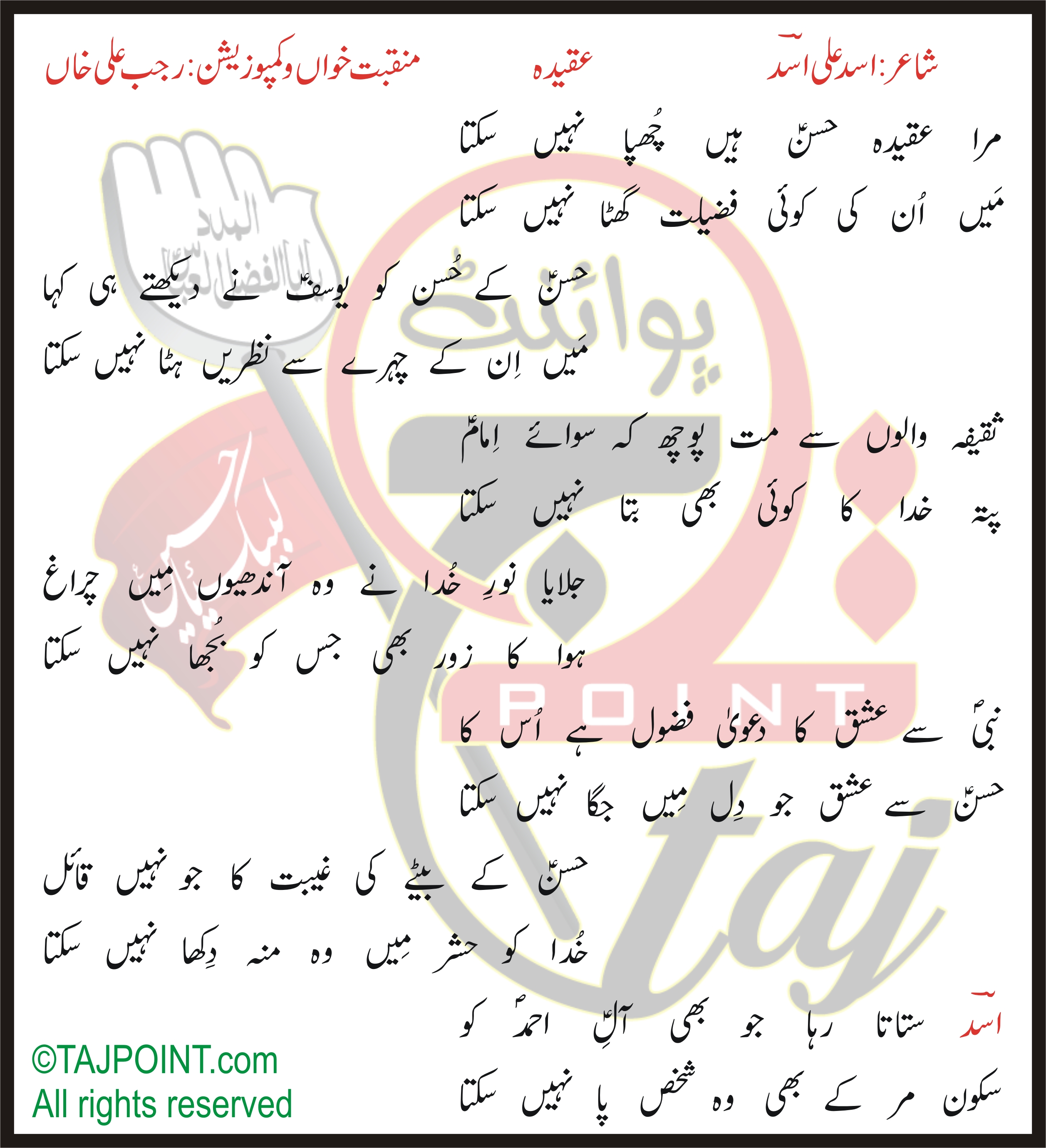 Aqeeda Lyrics In Urdu and Roman Urdu