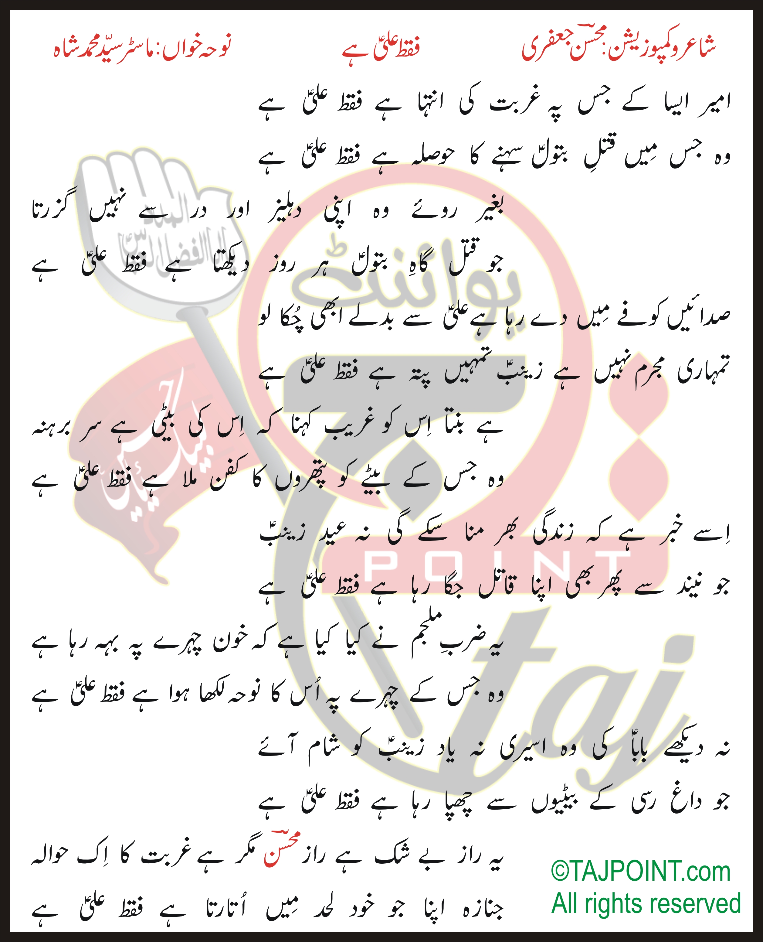 Jo Qatal Gah-e-Batool Har Roz Dekhta Hai Faqat Ali Hai.