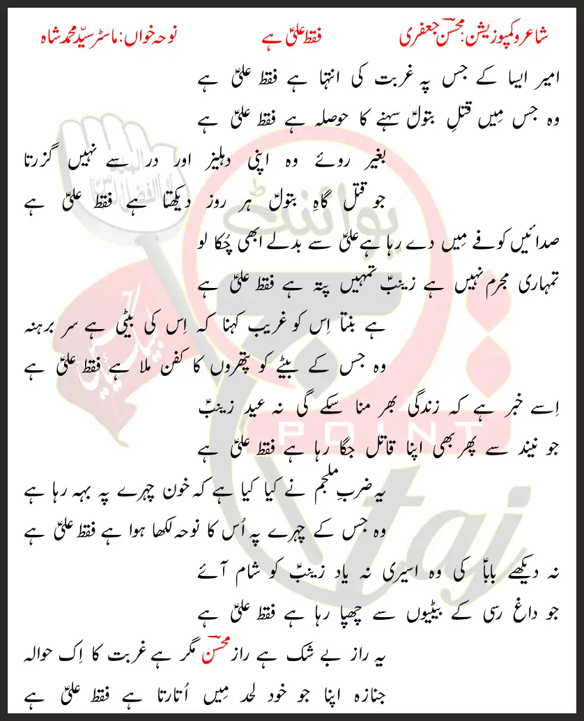 Faqat Ali Hai Lyrics In Urdu Master Syed Mohammad Shah