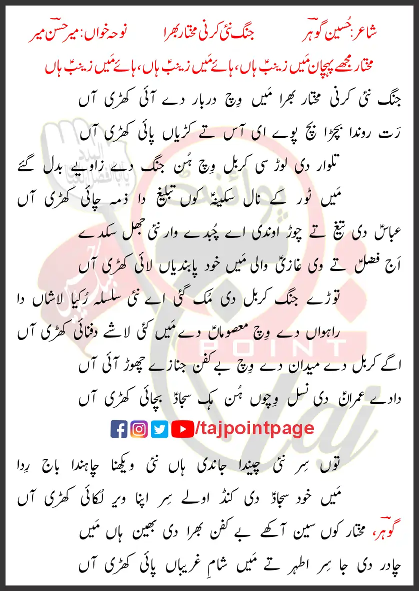 Mukhtar Mujhe Pehchan Main Zainab Haan Haye Main Zainab Haan Haye Main Zainab Haan.