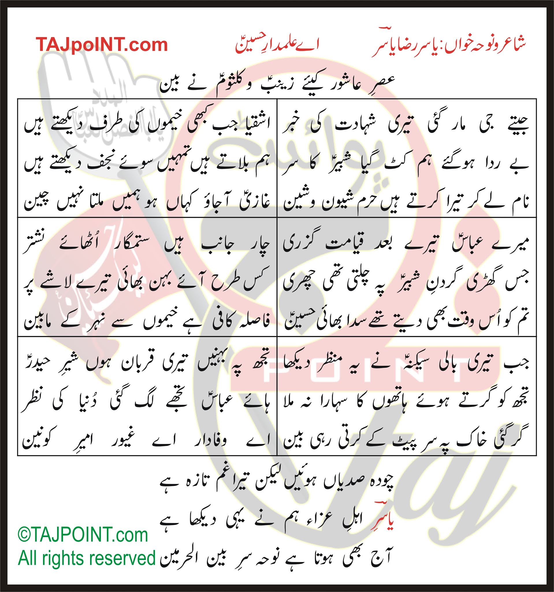 Asar-e-Ashor Kiye Zainab-o-Kulsoom Ne Bain.