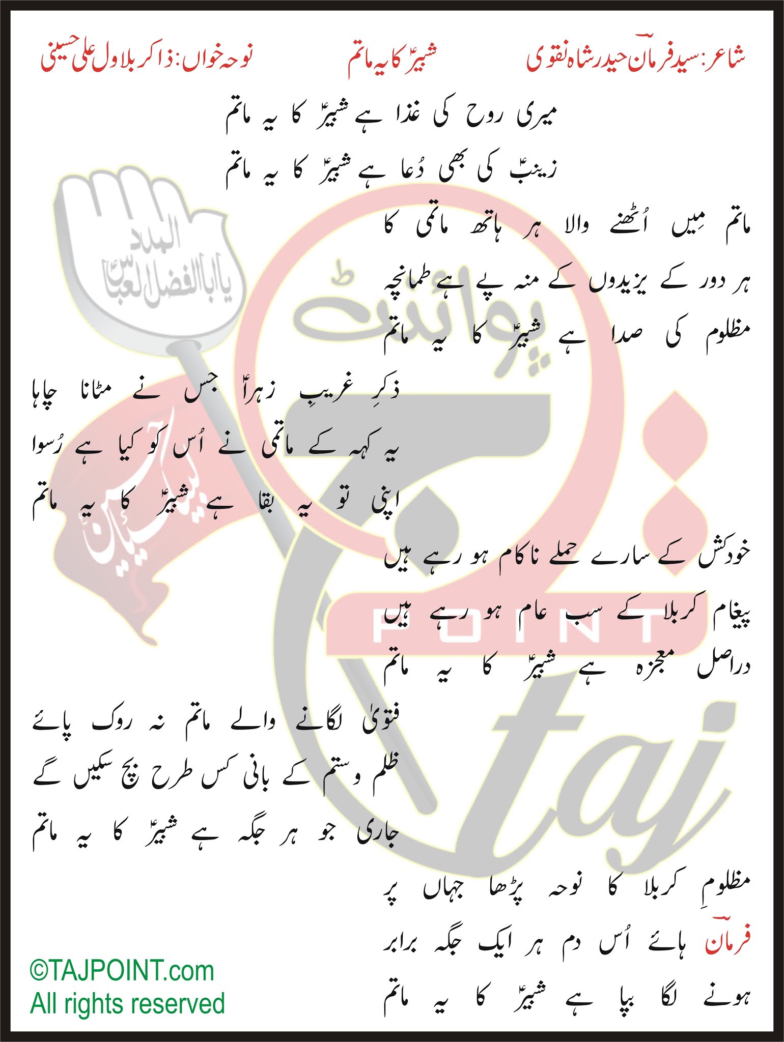 Meri Rooh Ki Giza Hai Shabeer Ka Yeh Matam.