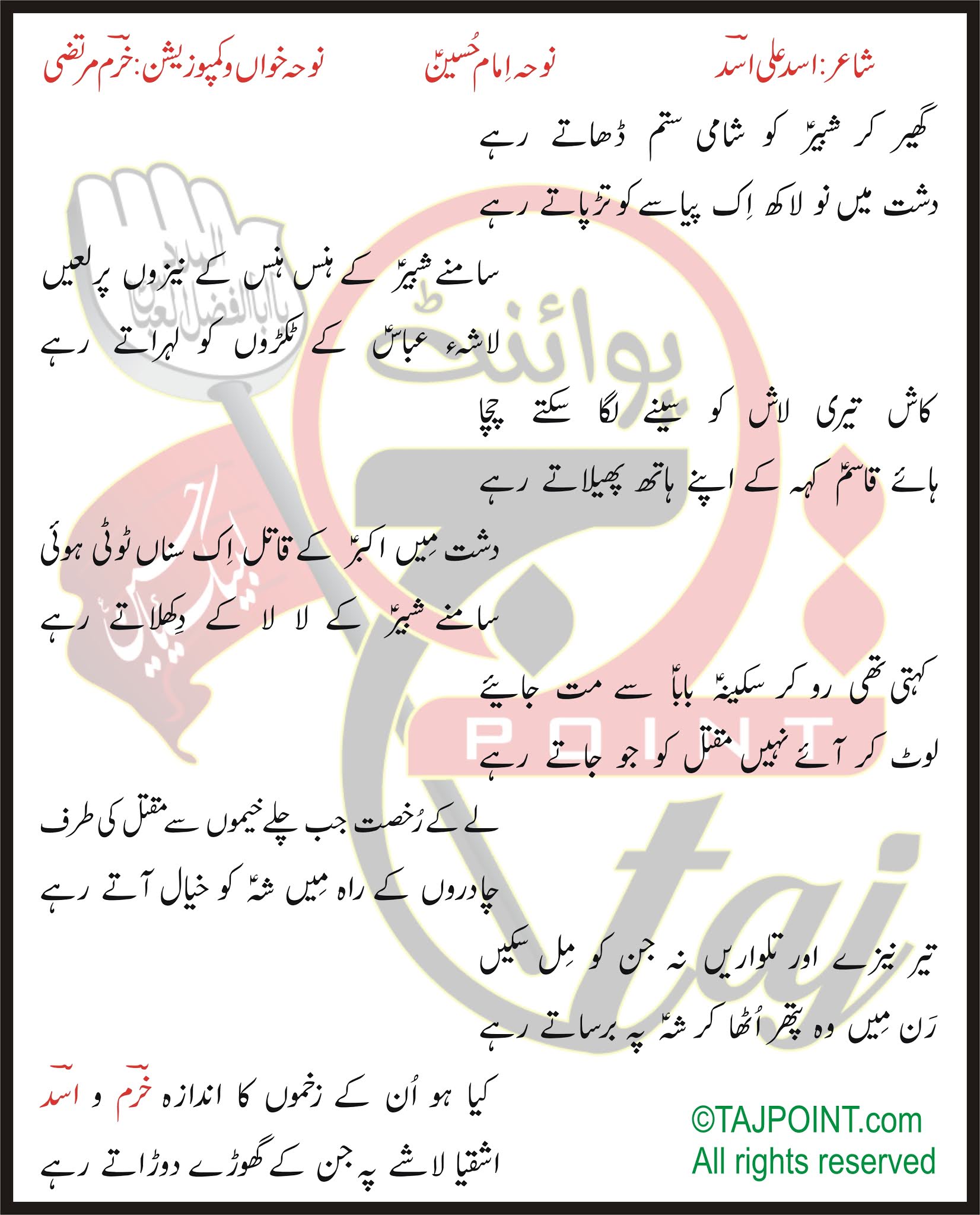 Ghair Kar Shabbir Ko Shami Sitam Dhatay Rahe Lyrics In Urdu and Roman Urdu