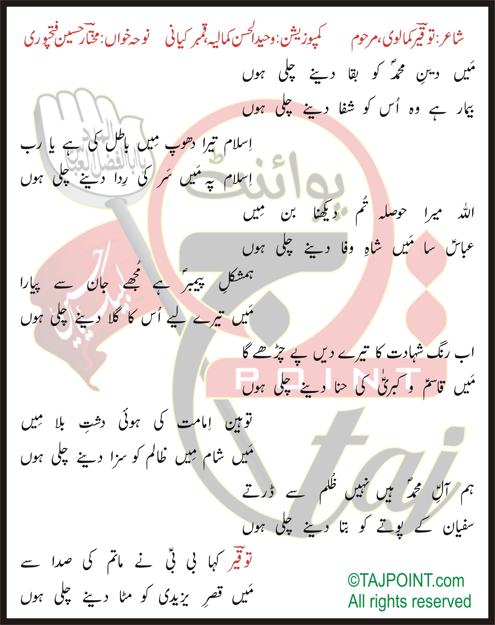 Main Deen-e-Muhammad Ko Baqa Dene Chali Hoon Lyrics In Urdu and Roman Urdu