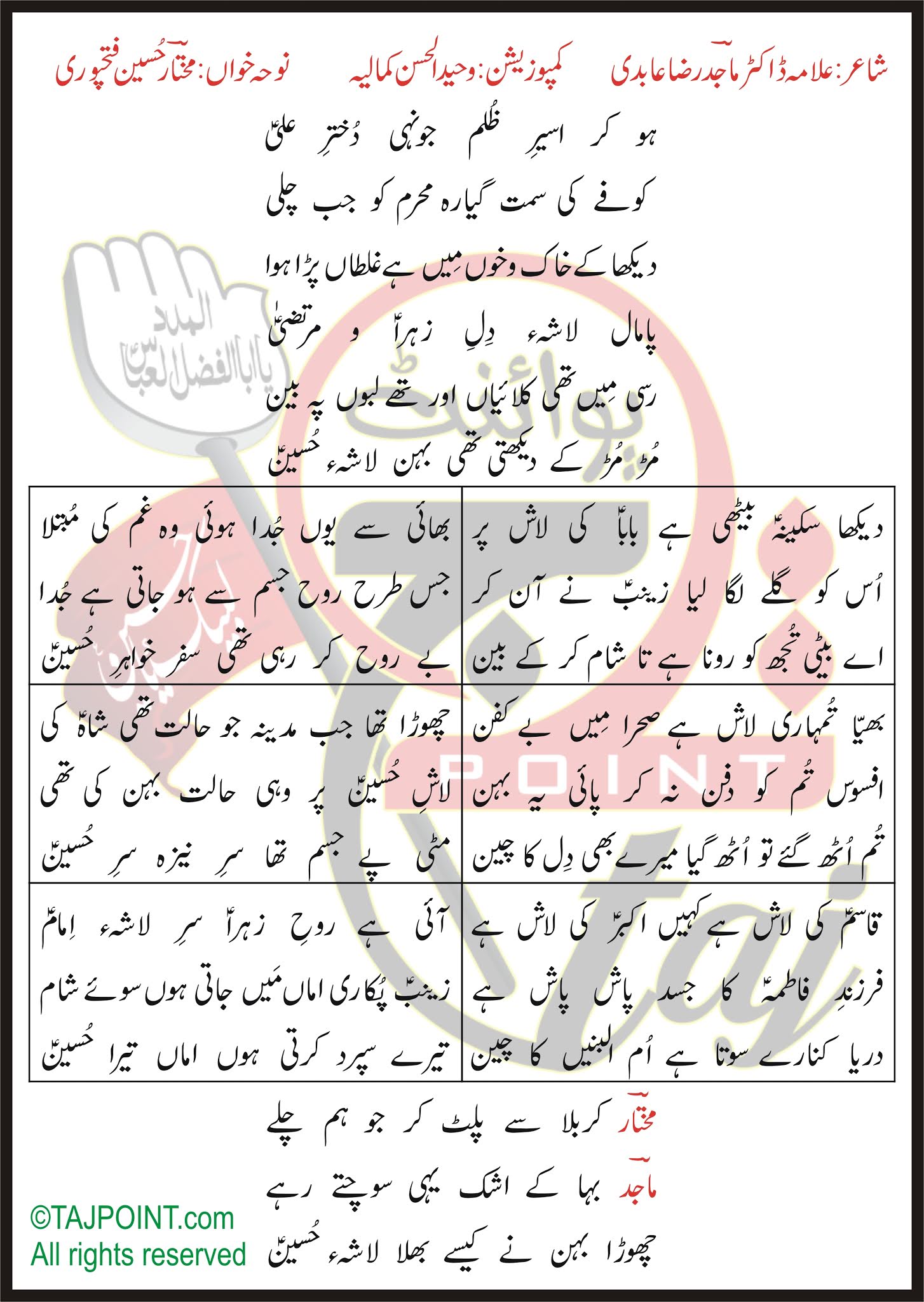 Poet: :Allama Dr Majid Raza Abidi: