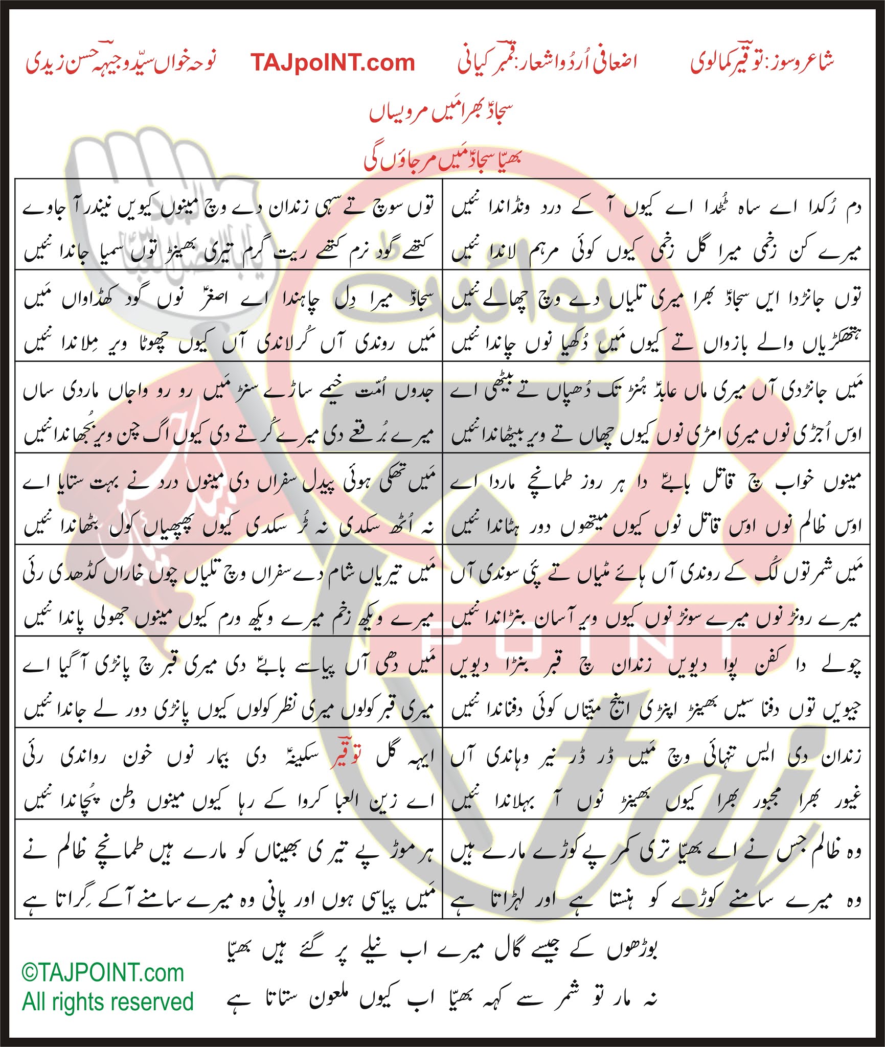 سجادؑ بھرا مَیں مر ویساں