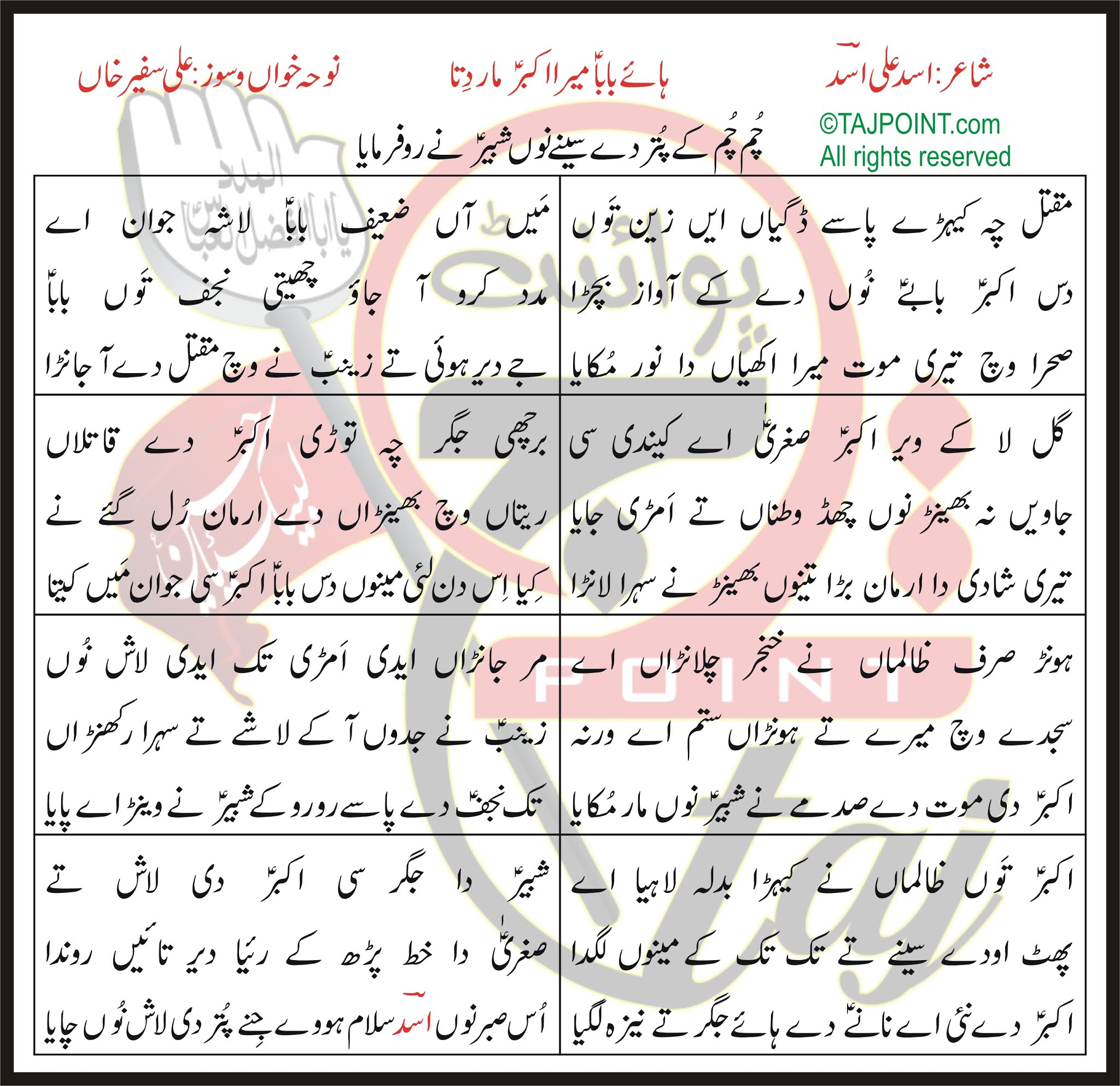 Akbar Taun Zalimaan Ne Kehra Badlah Lahaya Aye.