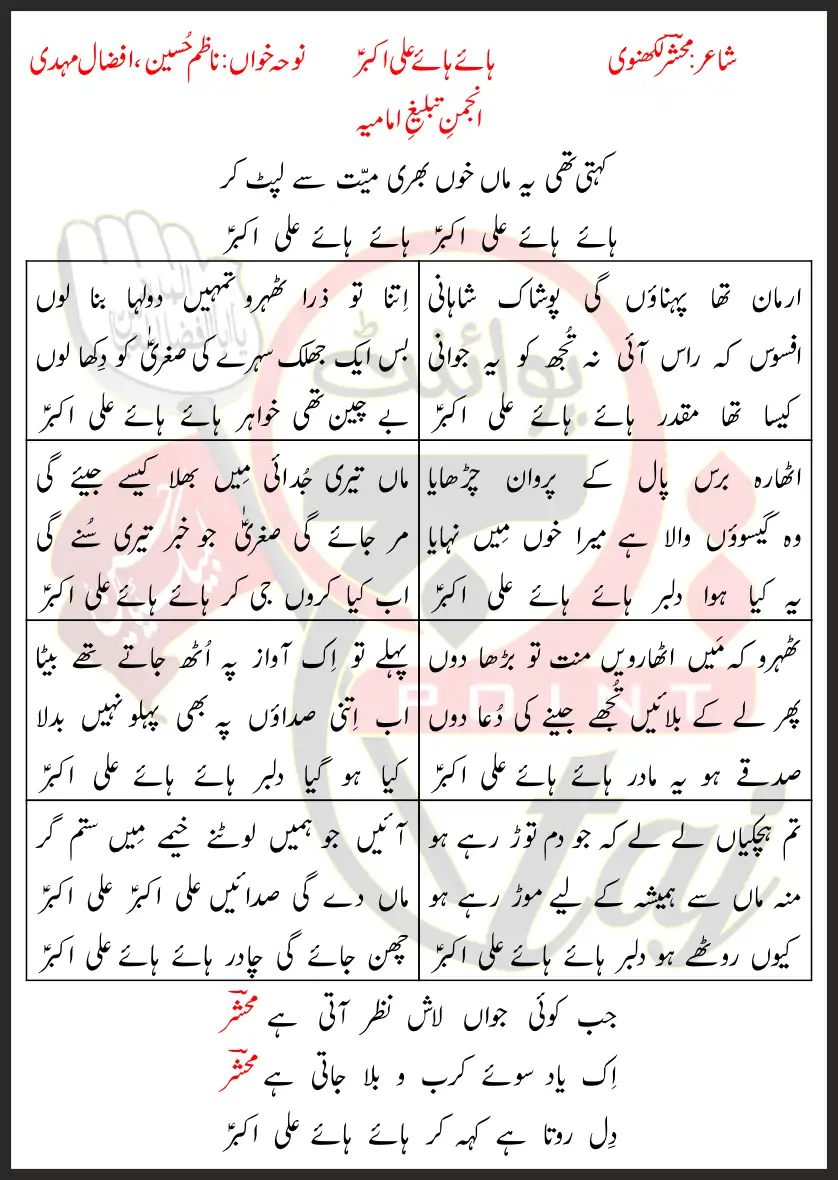 Sadqay Ho Yeh Madar Haye Haye Ali Akbar.