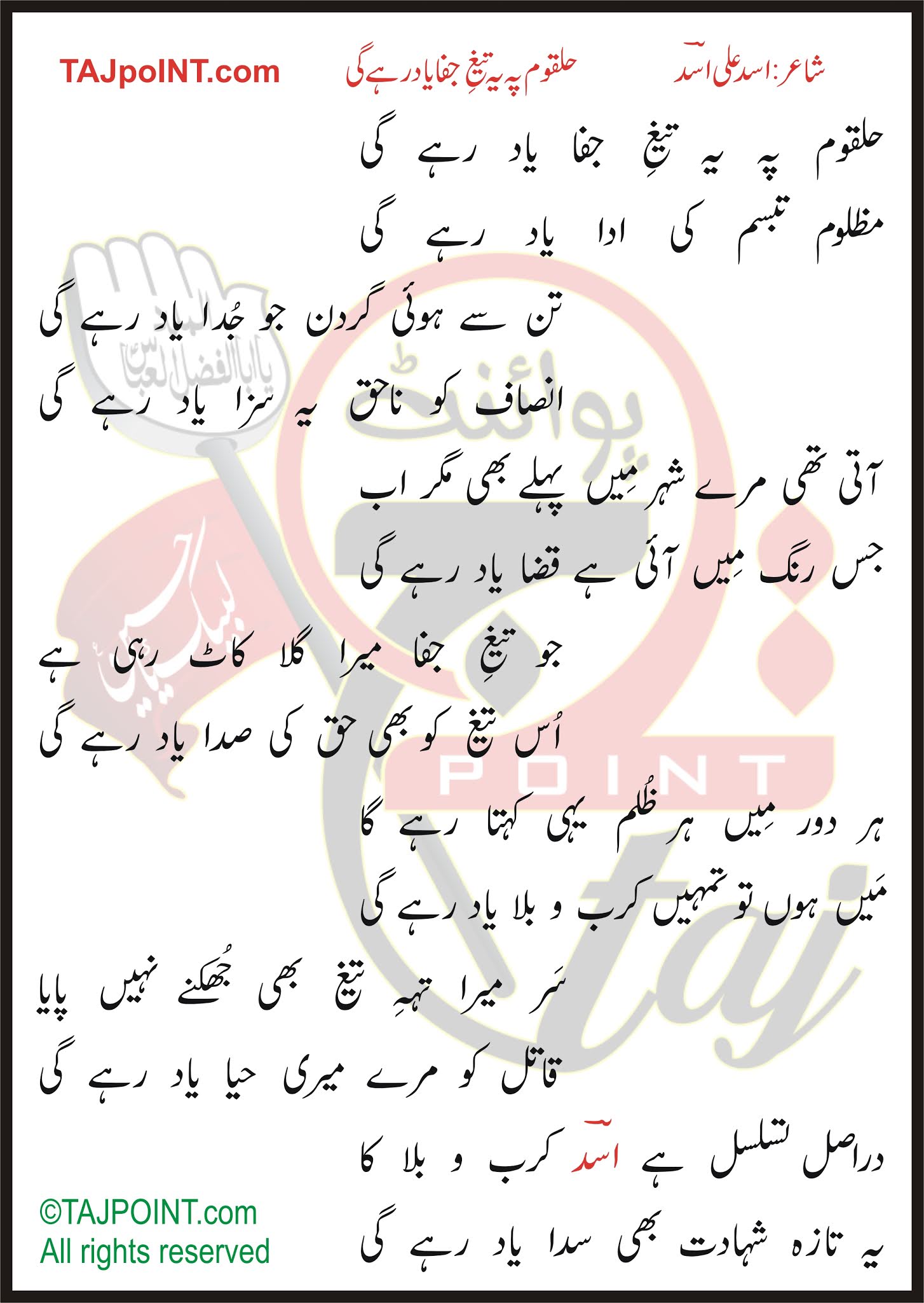 Halqoom Pe Taig-e-Jafa Yaad Rahe Gi Lyrics In Urdu and Roman Urdu