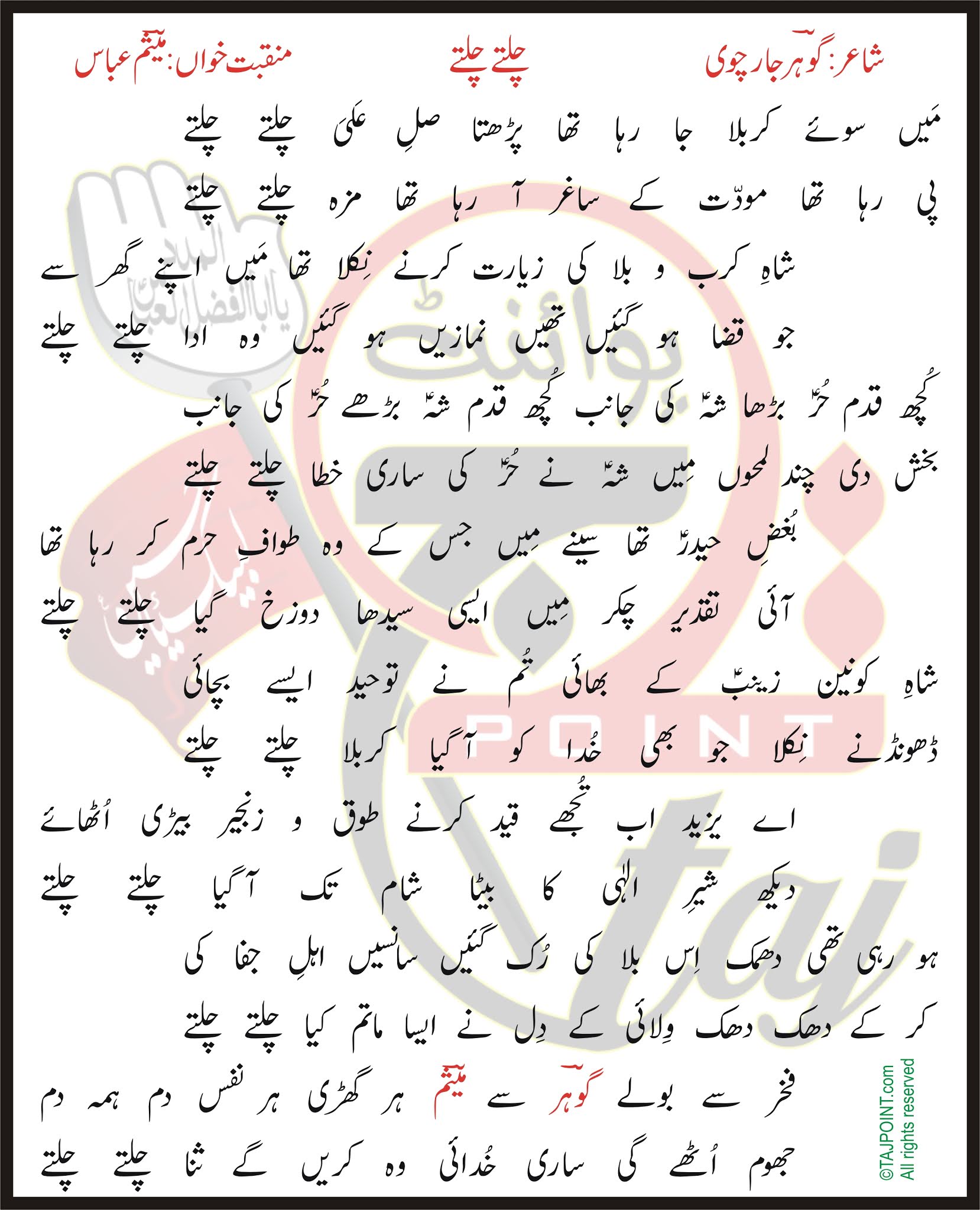 Dhondne Nikla Jo Bhi Khuda Ko Aa Gaya Karbala Chalte Chalte.