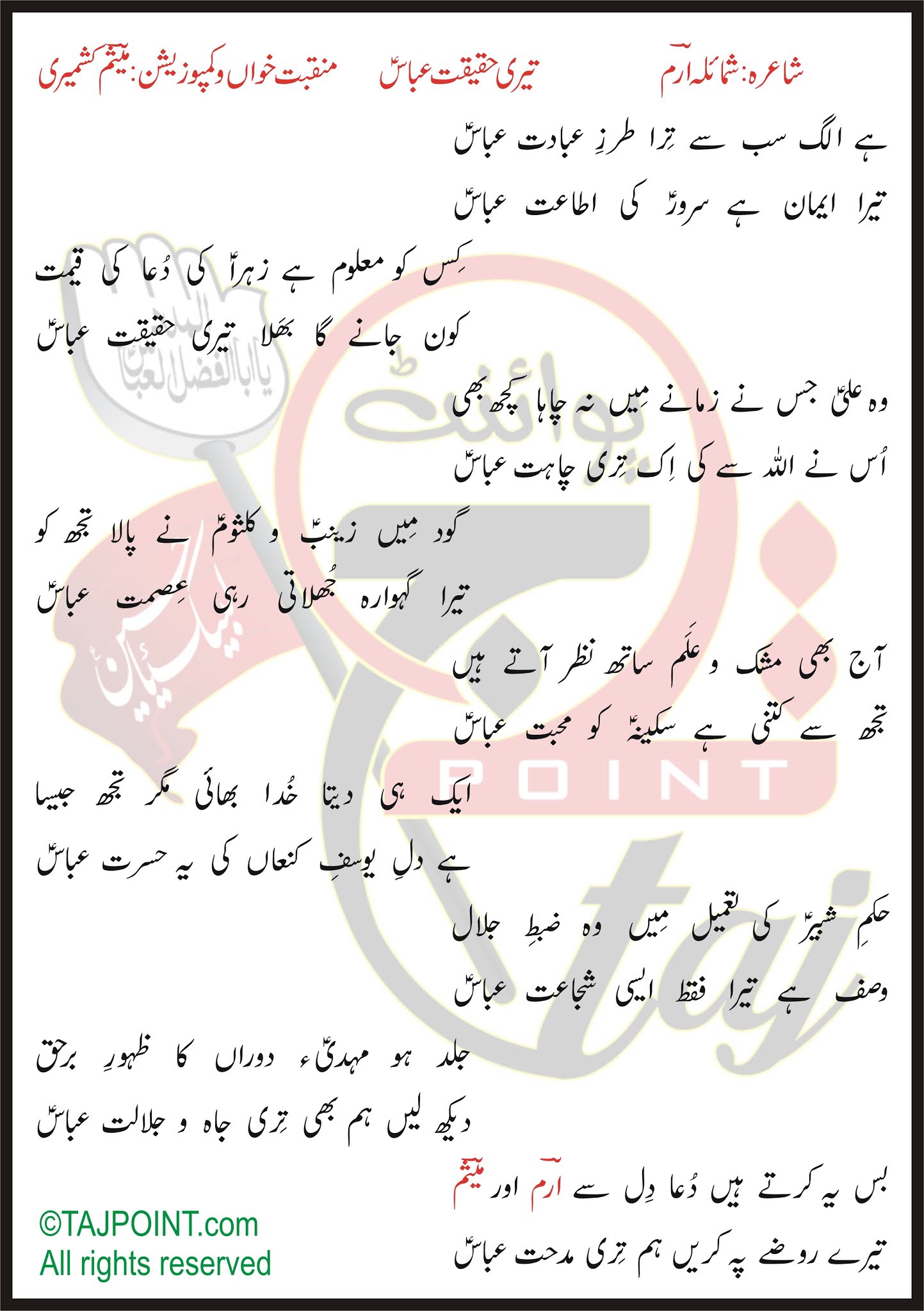 Teri Haqeeqat Abbas Meesum Kashmiri Lyrics In Urdu and Roman Urdu