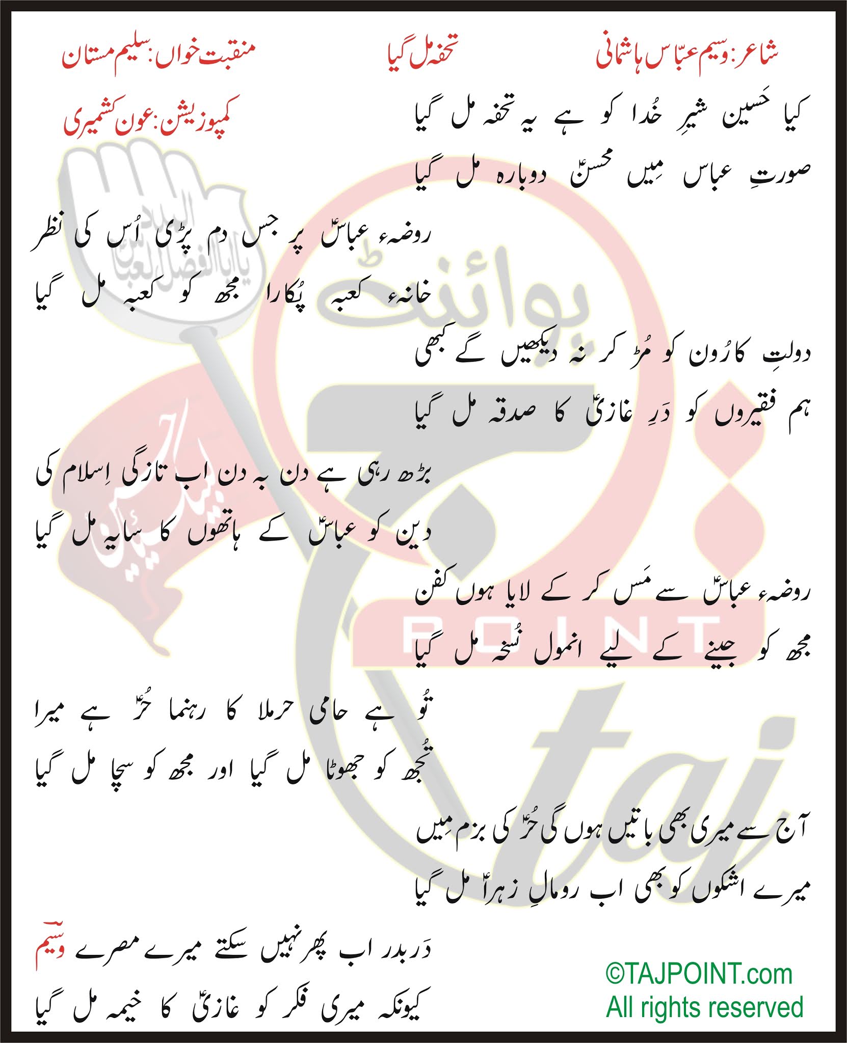 Roza-e-Abbas Se Mas Kar Ke Laya Hoon Kafan.