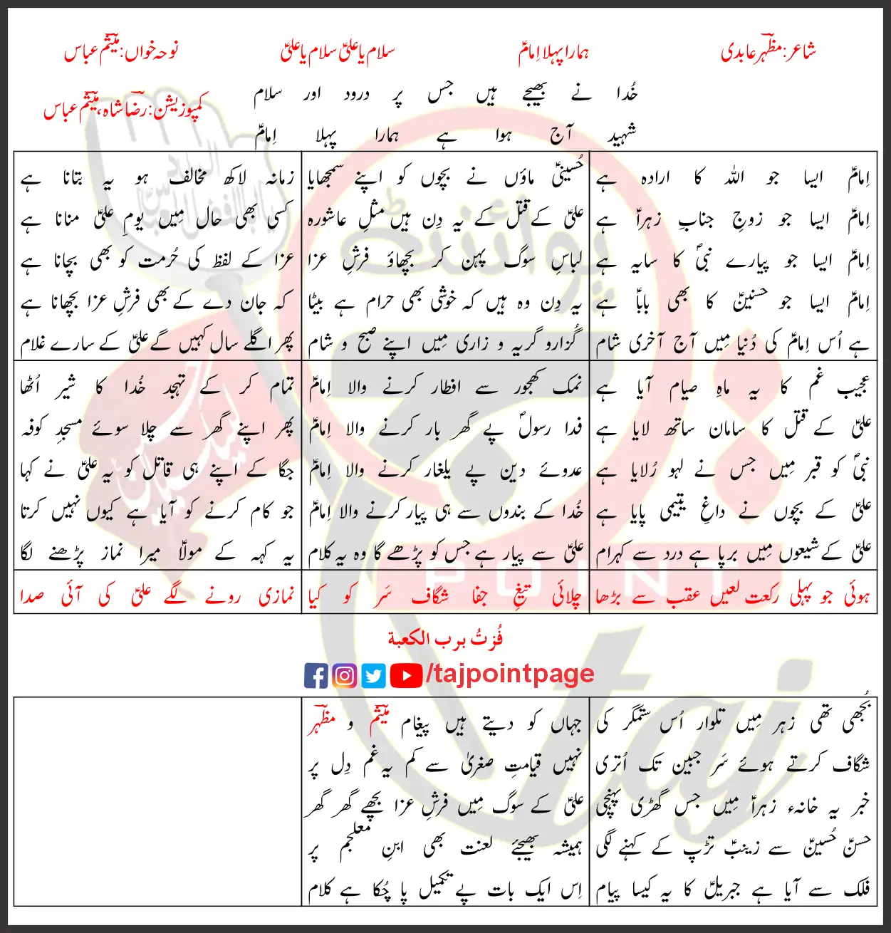 Hamara Pehla Imam Mesum Abbas Lyrics Urdu