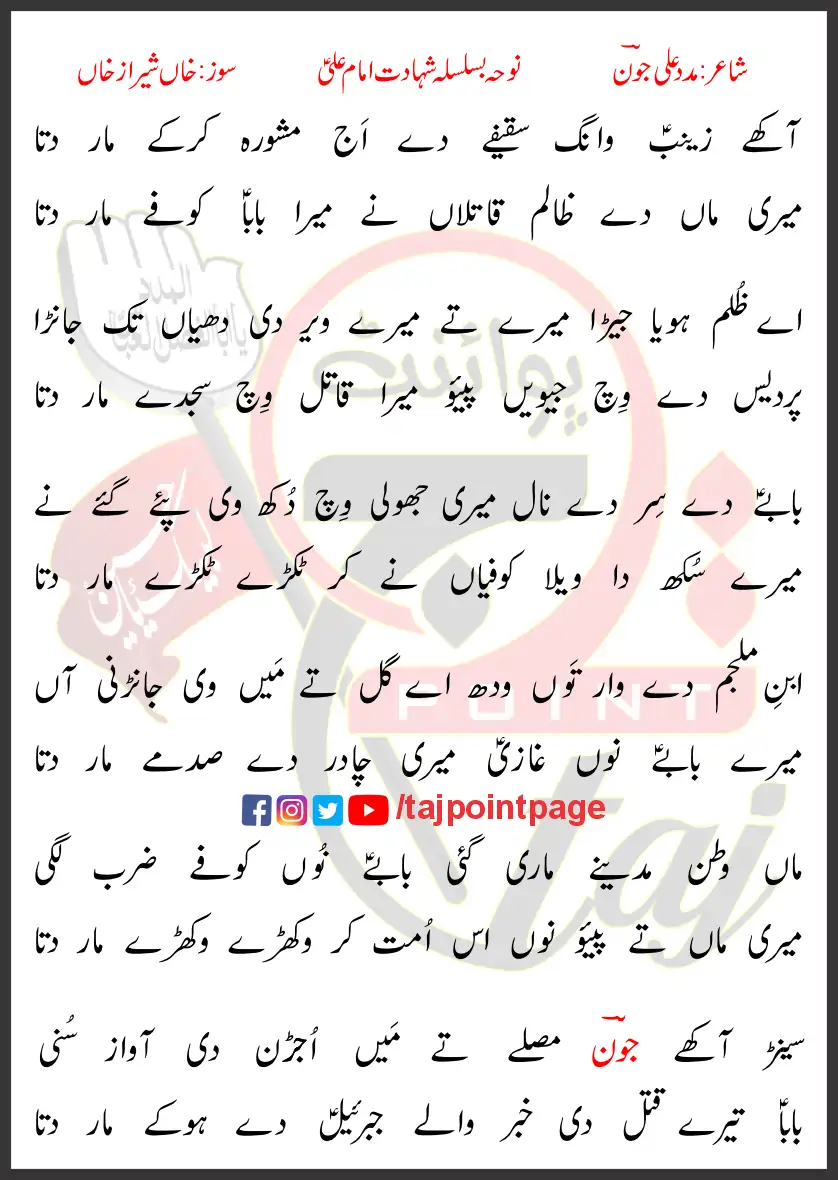 Aakhay Zainab Wang Saqeefay Dey Aj Mashwara Kar Ke Mar Dita Lyrics Punjabi 2021