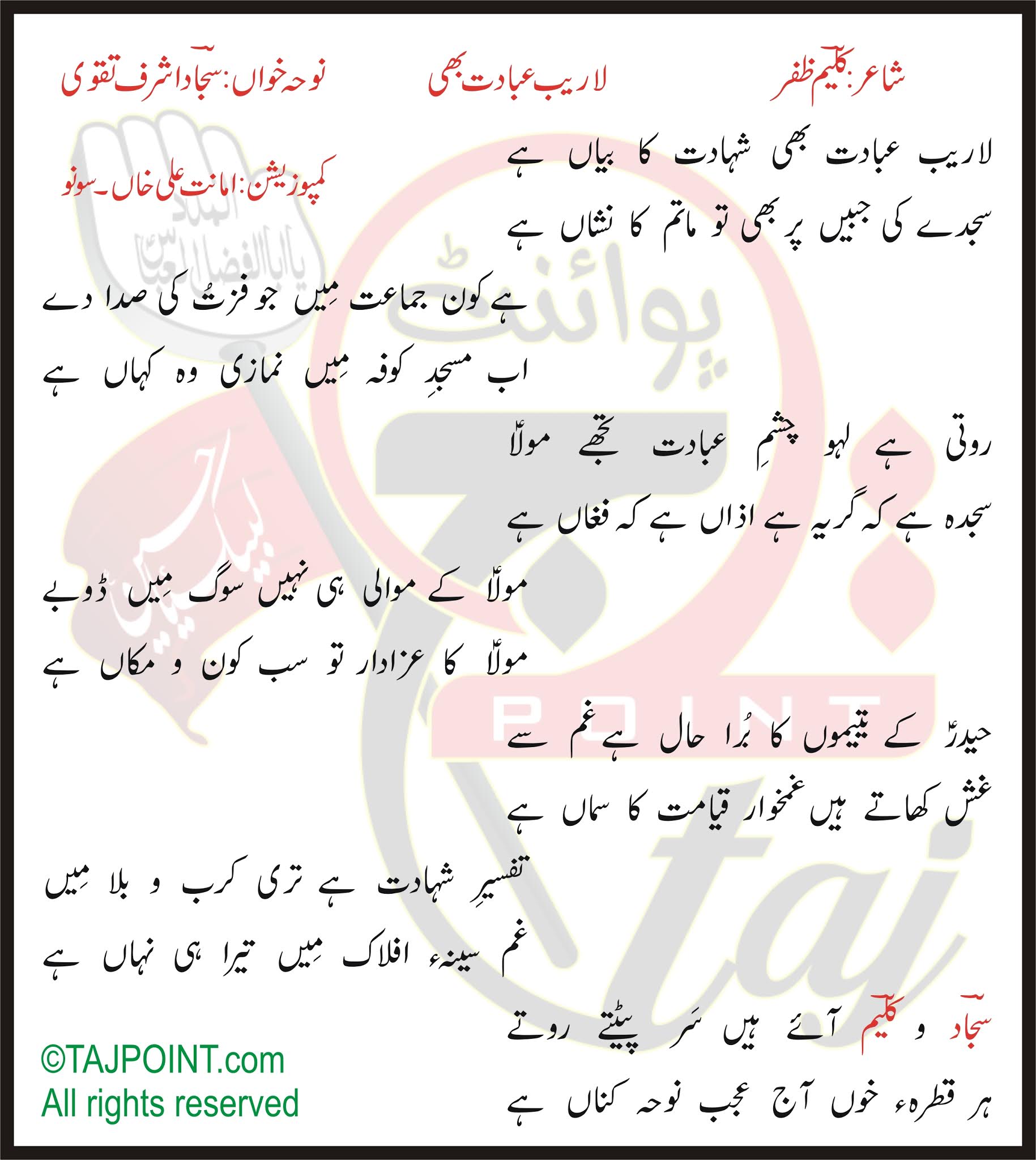 Laraib Ibadat Bhi Sajjad Ashraf Taqvi Lyrics In Urdu and Roman Urdu