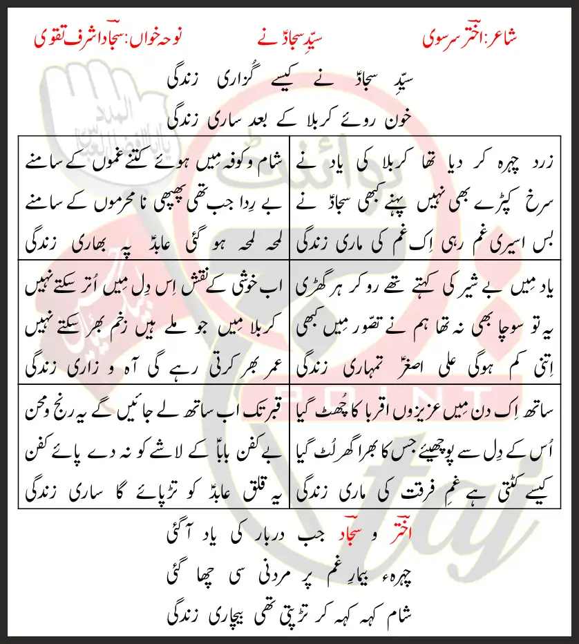 Noha Khuwan: :Sajjad Ashraf Taqvi: