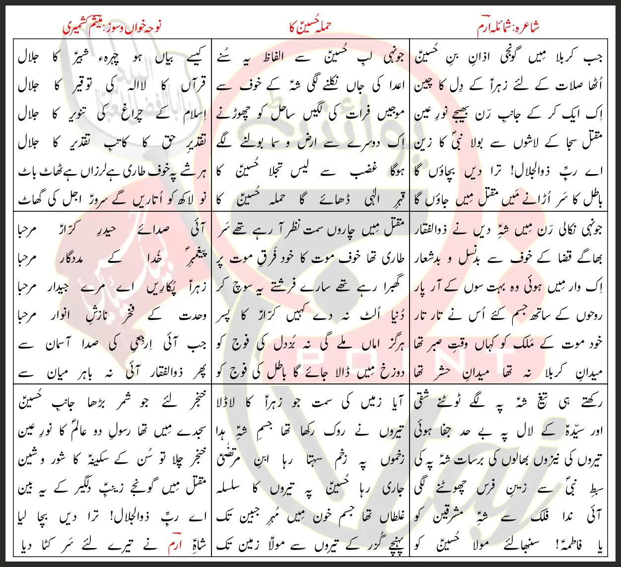 Hamla Hussain Ka Meesum Kashmiri Lyrics In Urdu 2021